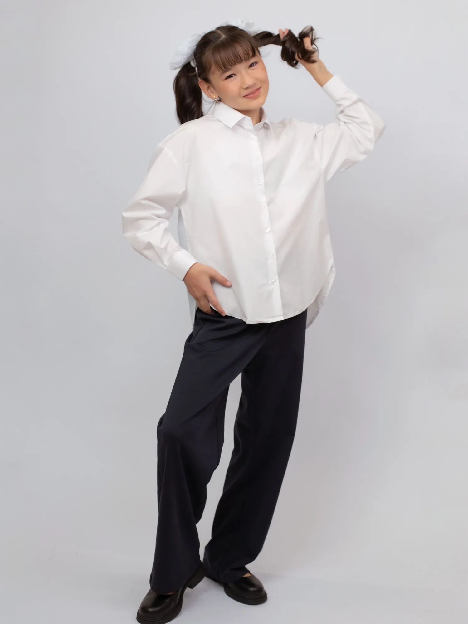 Классический воротник придаёт блузке аккуратный и строгий вид, делая её идеальным вариантом для школьной формы. Свободный крой не сковывает движения и позволяет чувствовать себя уверенно и комфортно в любой обстановке.