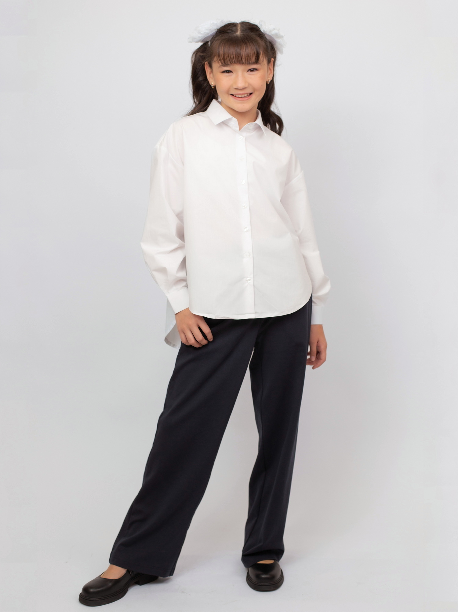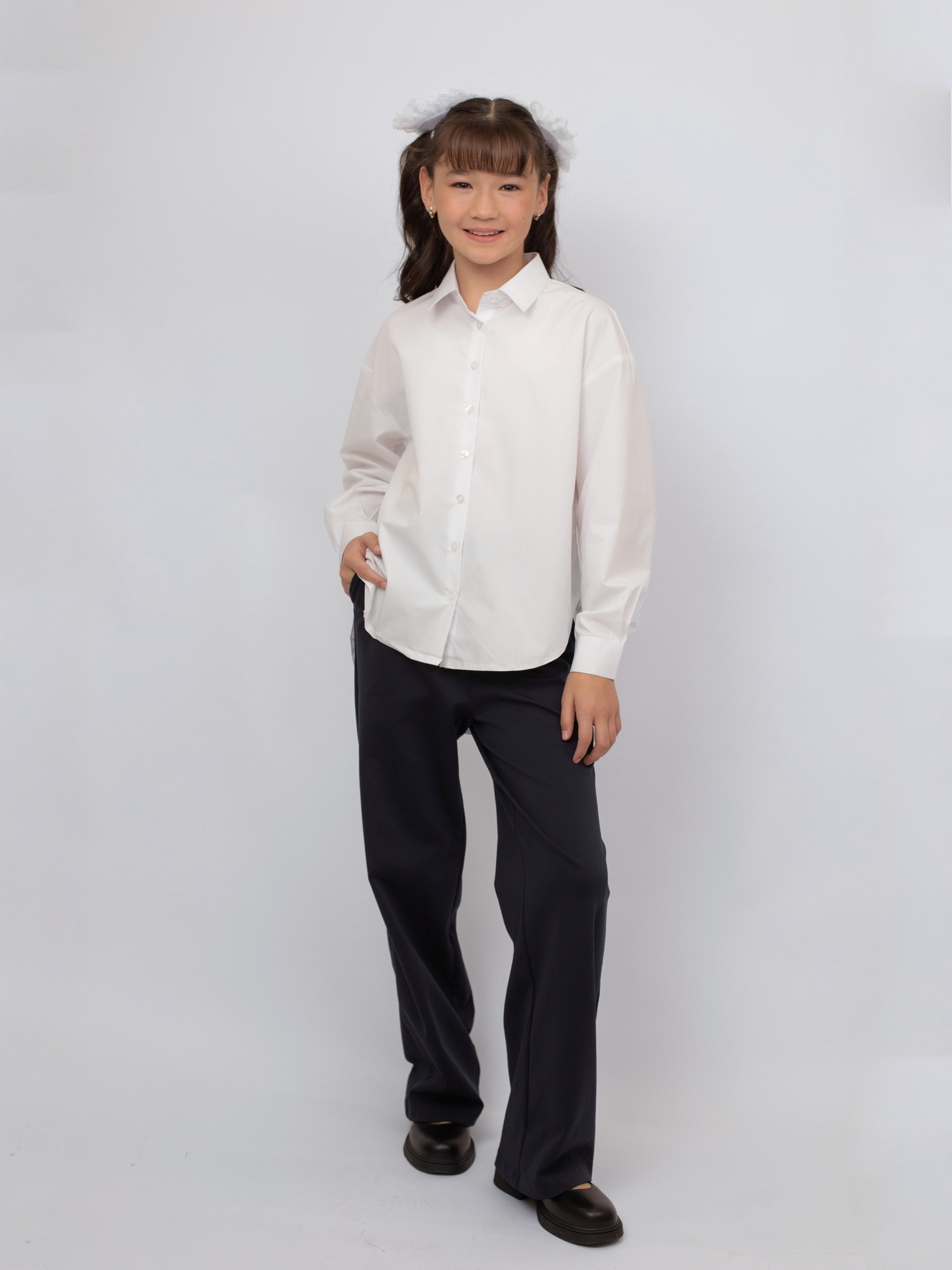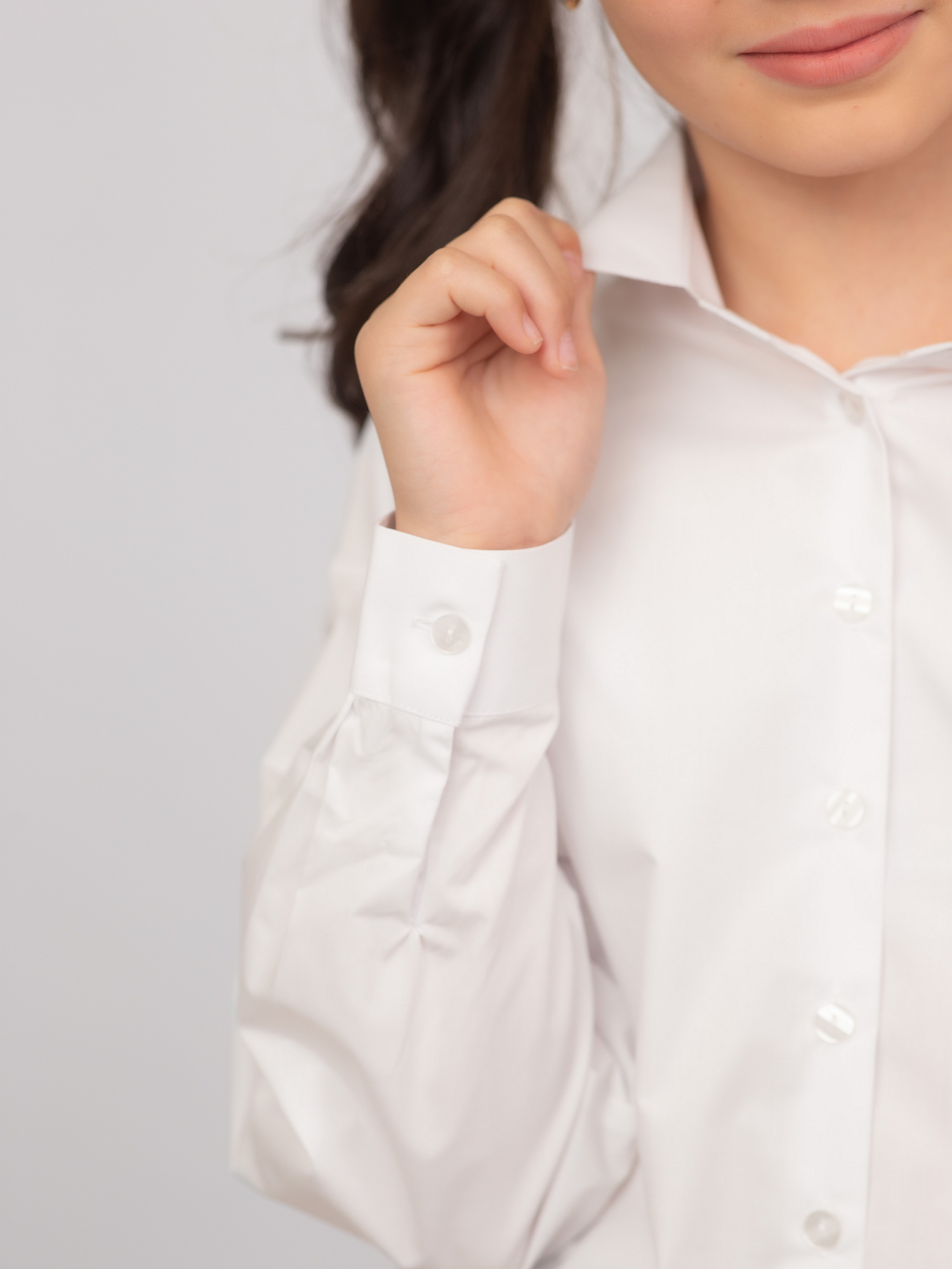 Классический воротник придаёт блузке аккуратный и строгий вид, делая её идеальным вариантом для школьной формы. Свободный крой не сковывает движения и позволяет чувствовать себя уверенно и комфортно в любой обстановке.