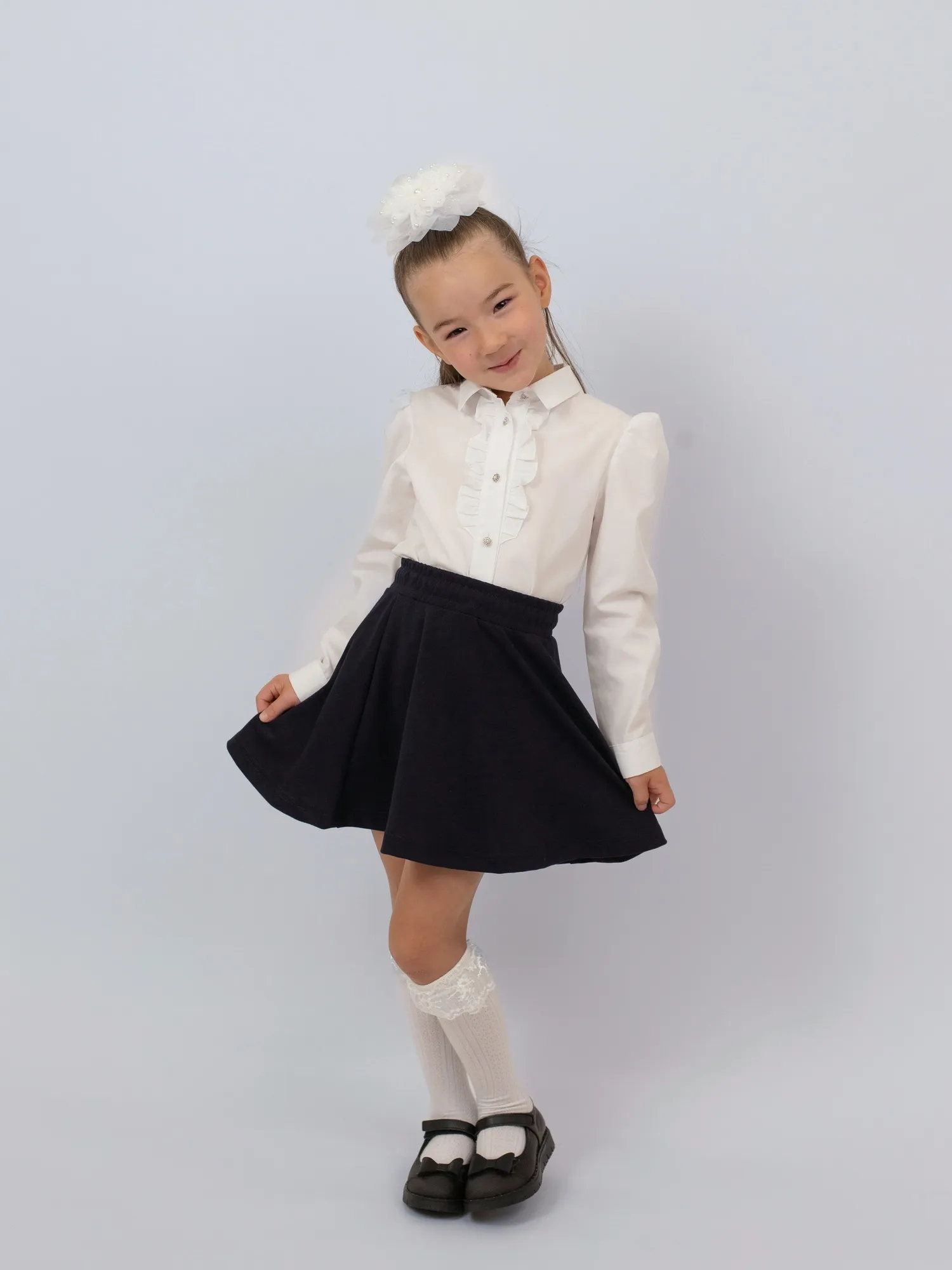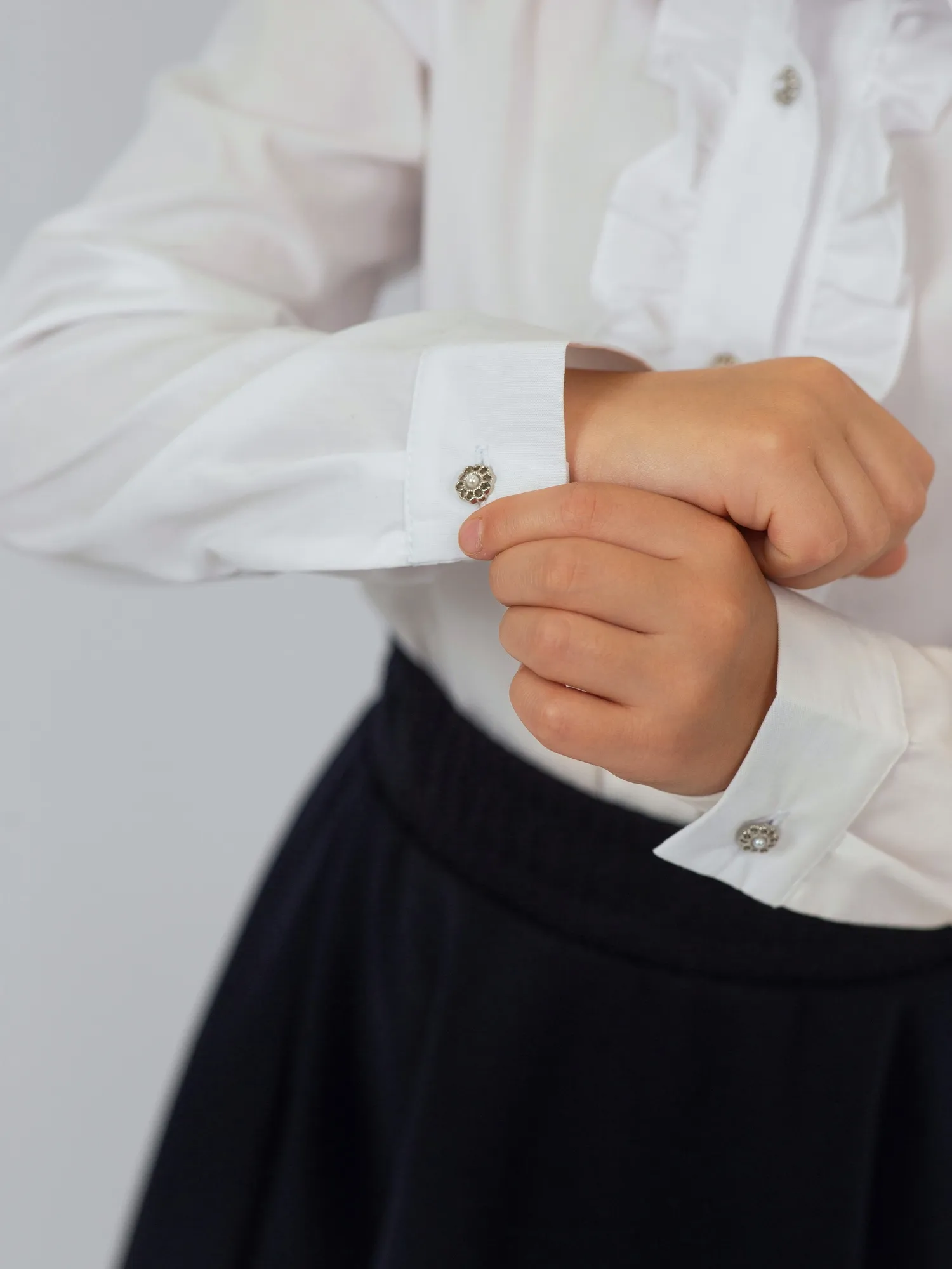 Элегантная и комфортная школьная блузка для девочки с длинными рукавами идеально подойдёт для учебных будней и торжественных мероприятий. Изготовлена из приятного к телу материала — хлопка с добавлением полиэстера, что обеспечивает удобство в носке и лёгкость в уходе. Модель украшена изящными рюшами на груди, которые придают образу утончённость и аккуратность. Прекрасный выбор для стильного и практичного школьного гардероба.