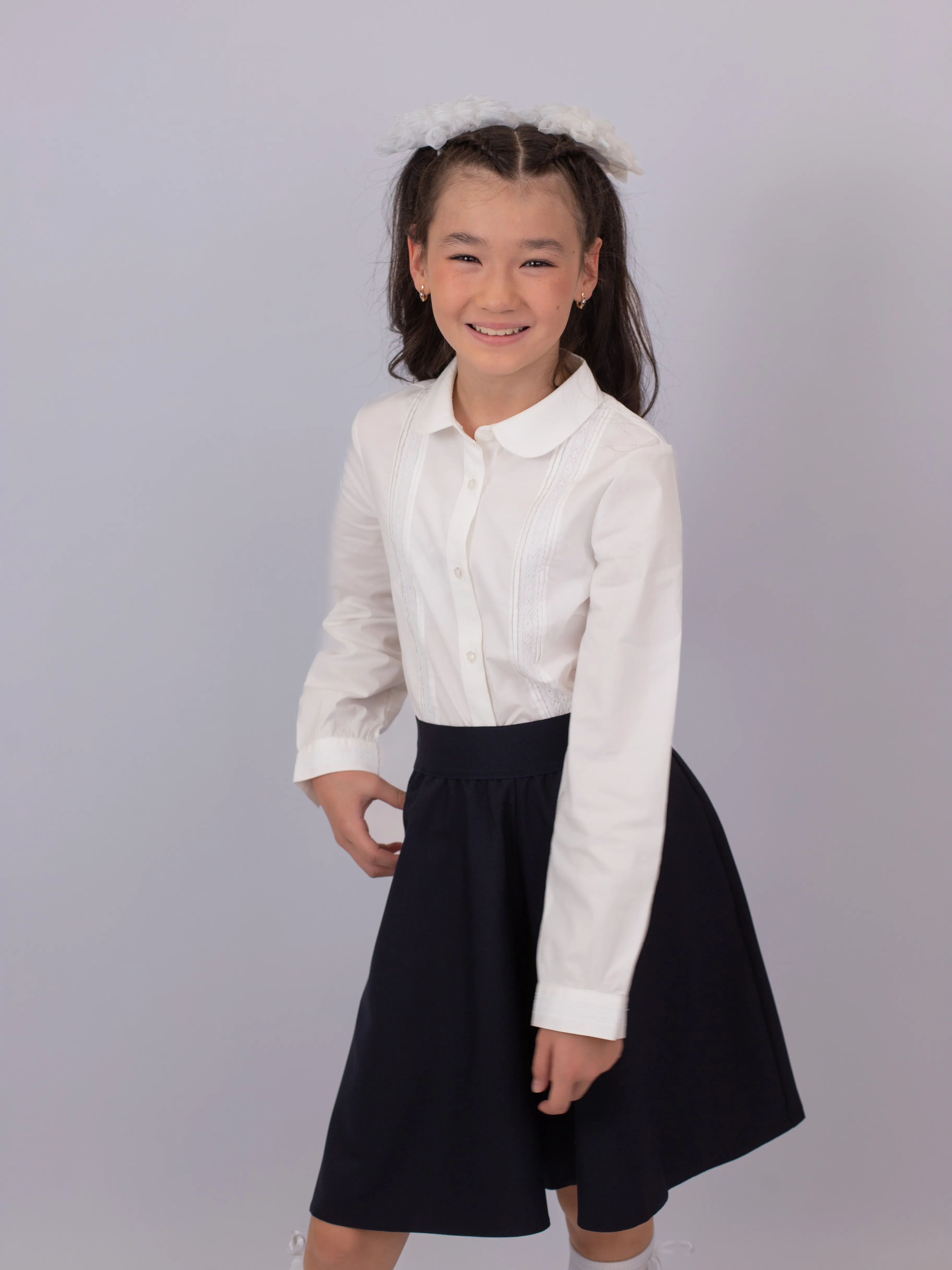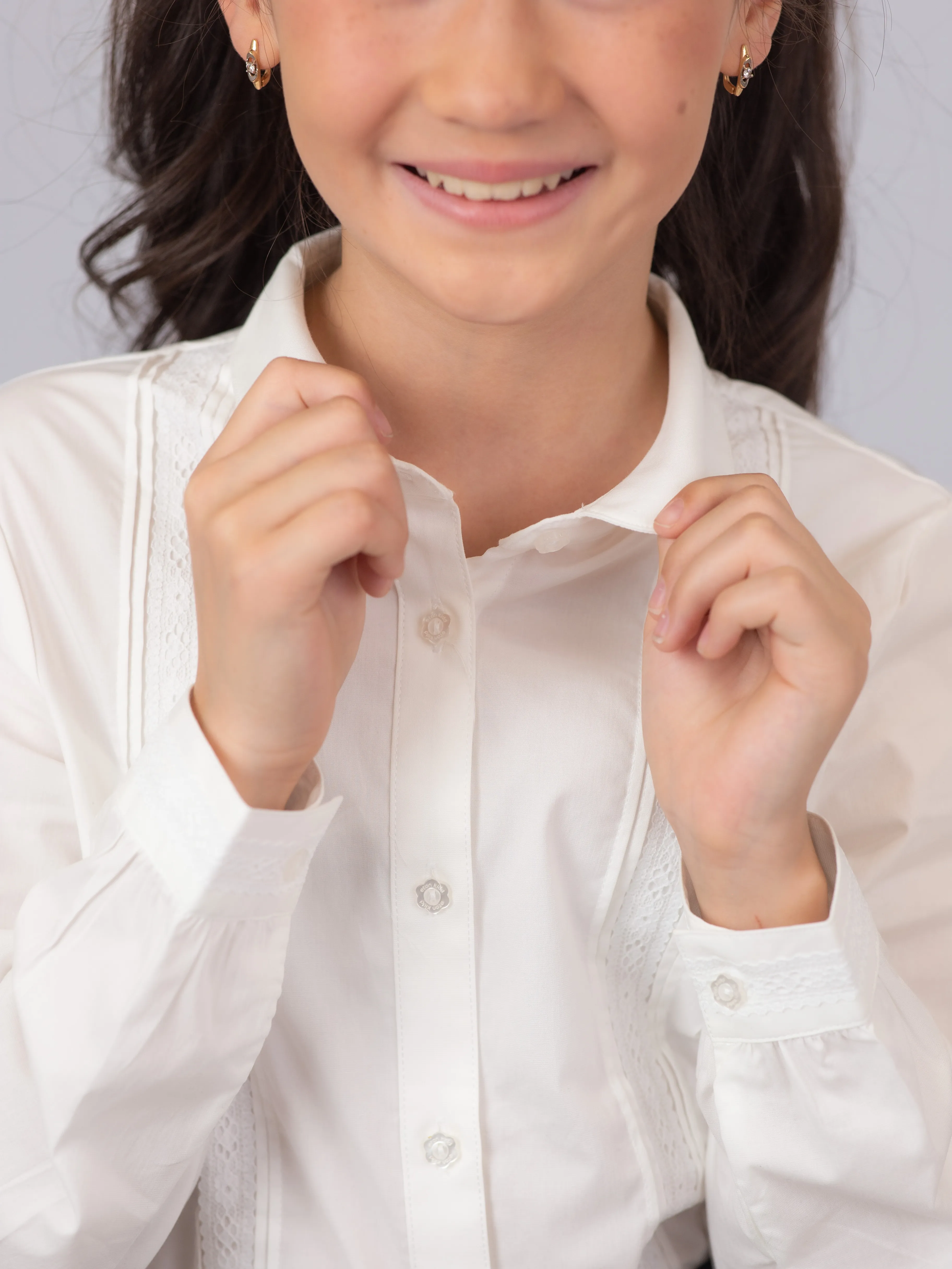 Классический крой с аккуратным воротничком и сдержанный дизайн соответствуют требованиям школьного дресс-кода. Блузка подходит как для повседневного ношения, так и для официальных школьных мероприятий.