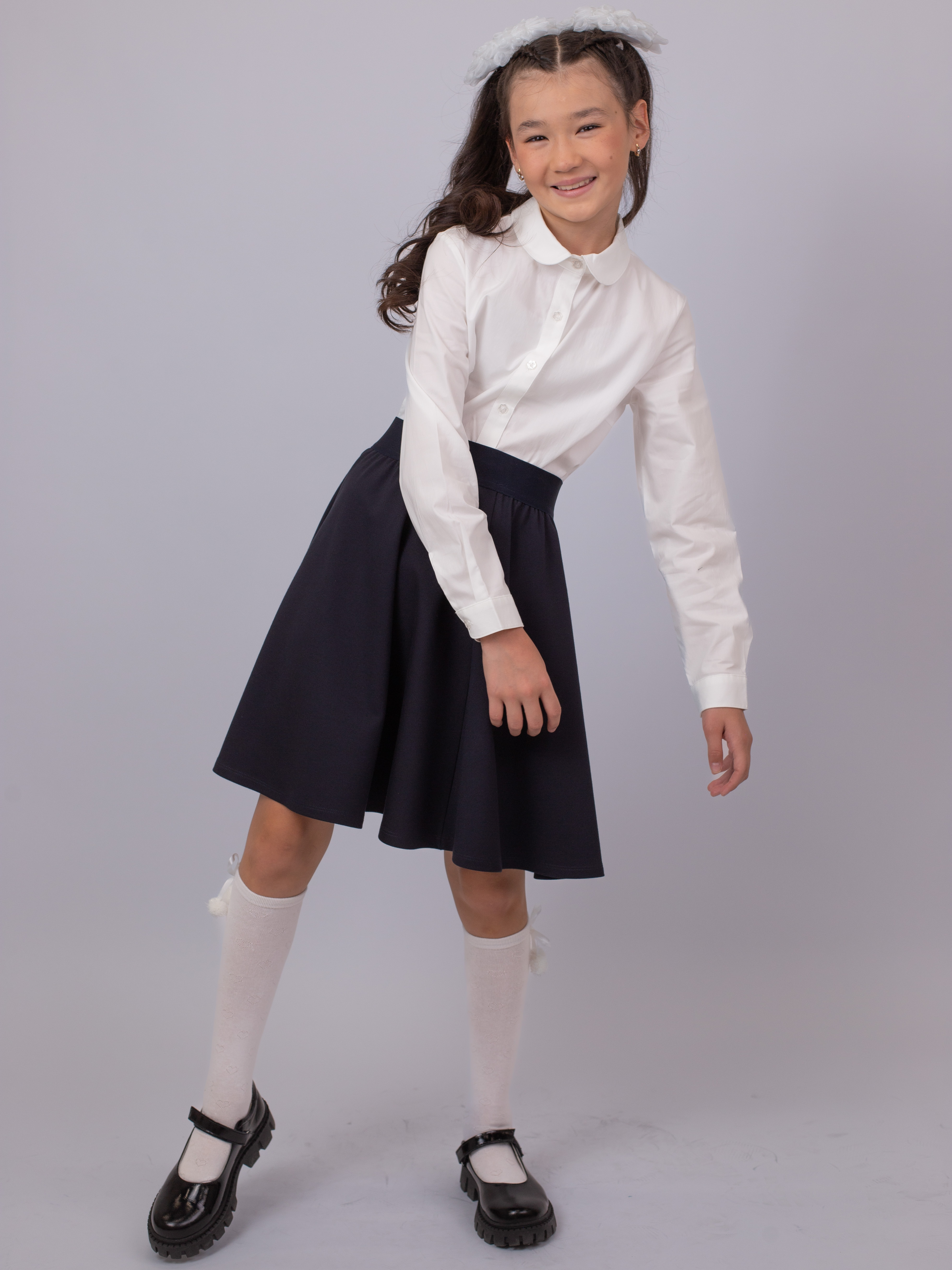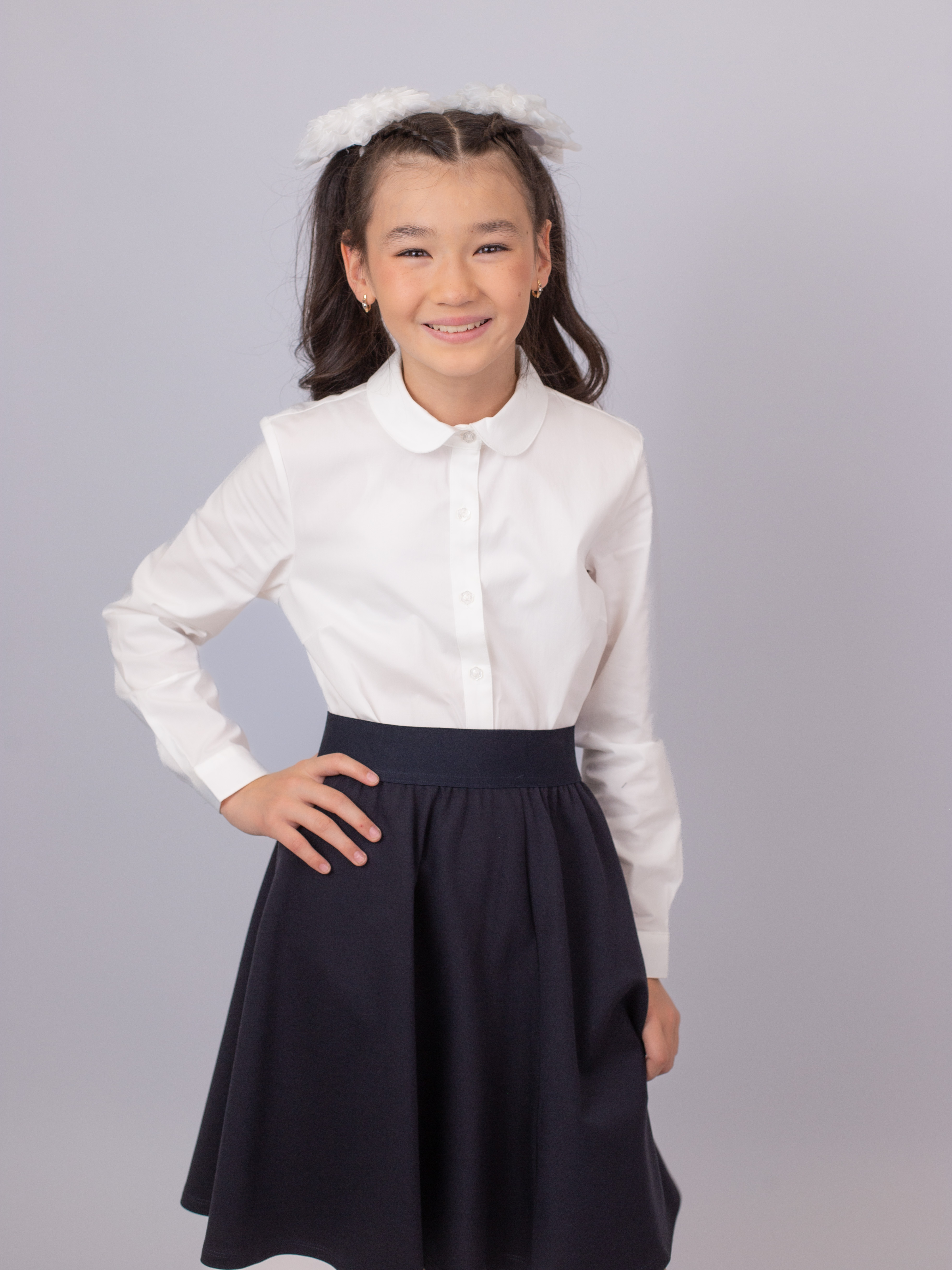 Классический крой с аккуратным воротничком и сдержанный дизайн соответствуют требованиям школьного дресс-кода. Блузка подходит как для повседневного ношения, так и для официальных школьных мероприятий.