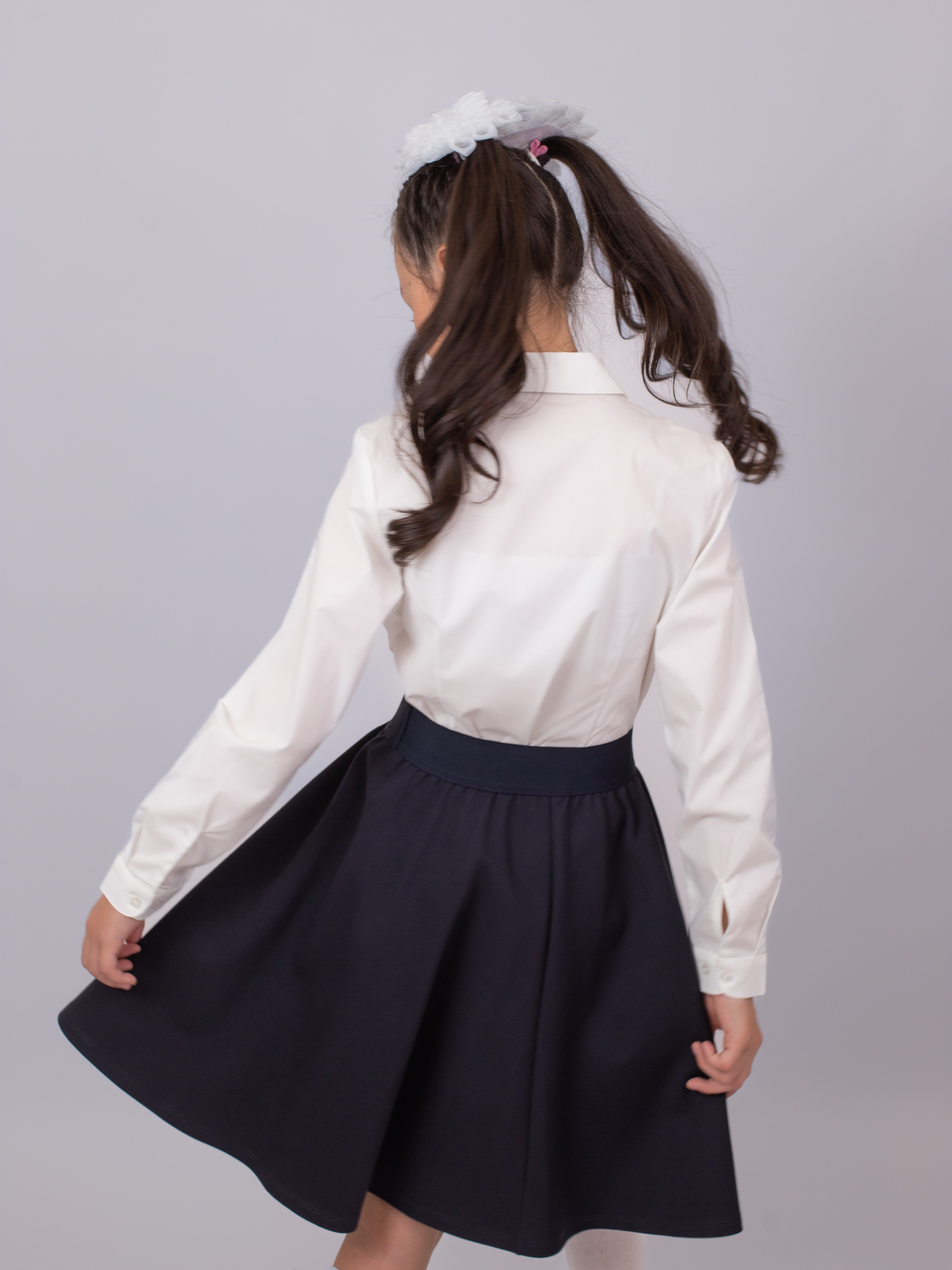 Школьная блузка для девочки с длинными рукавами выполнена из мягкого и комфортного материала: 96,5% хлопок, 3,5% спандекс. Натуральный состав с добавлением эластана обеспечивает хорошую посадку, воздухопроницаемость и лёгкую эластичность, не сковывая движений в течение дня.