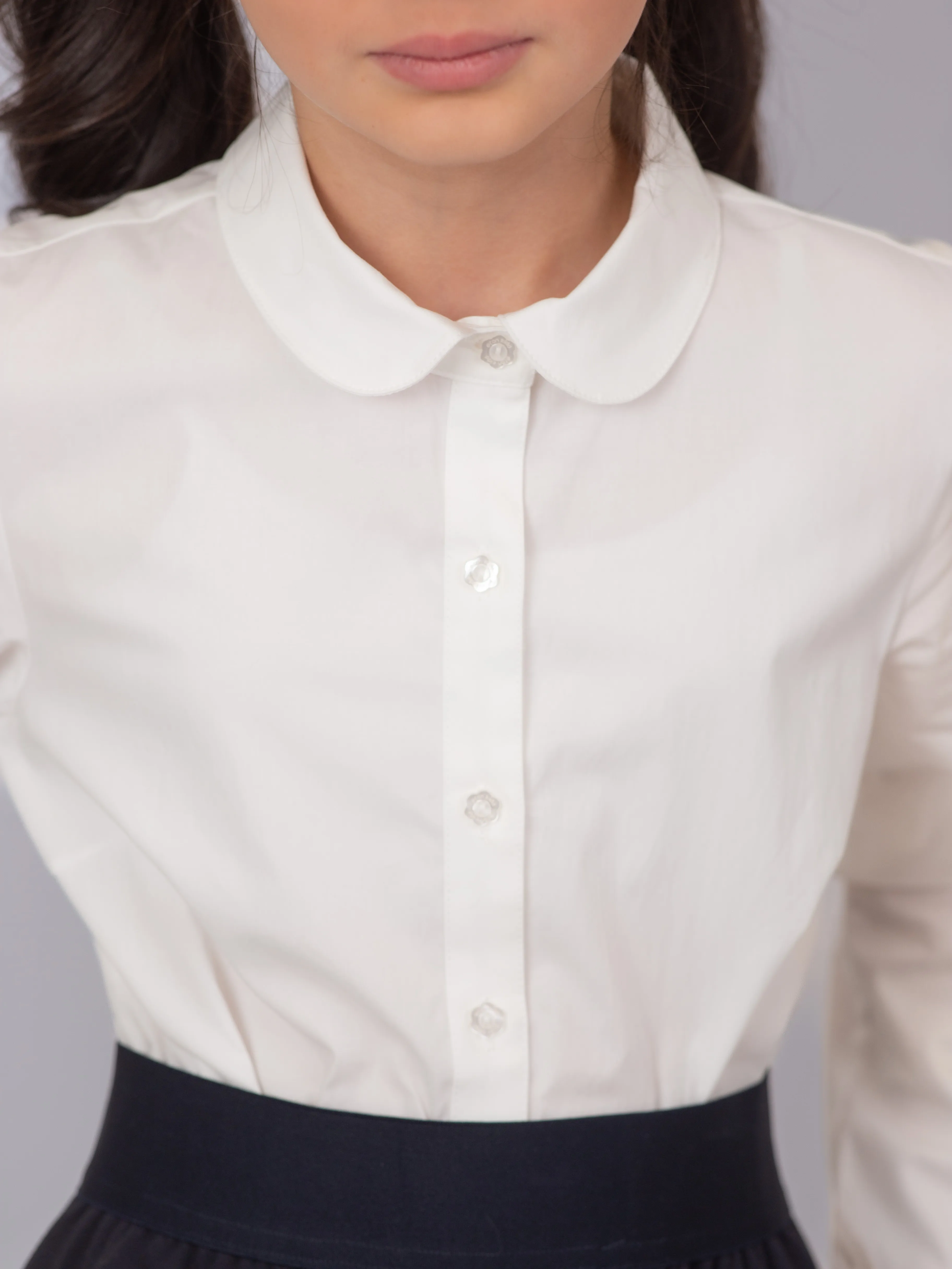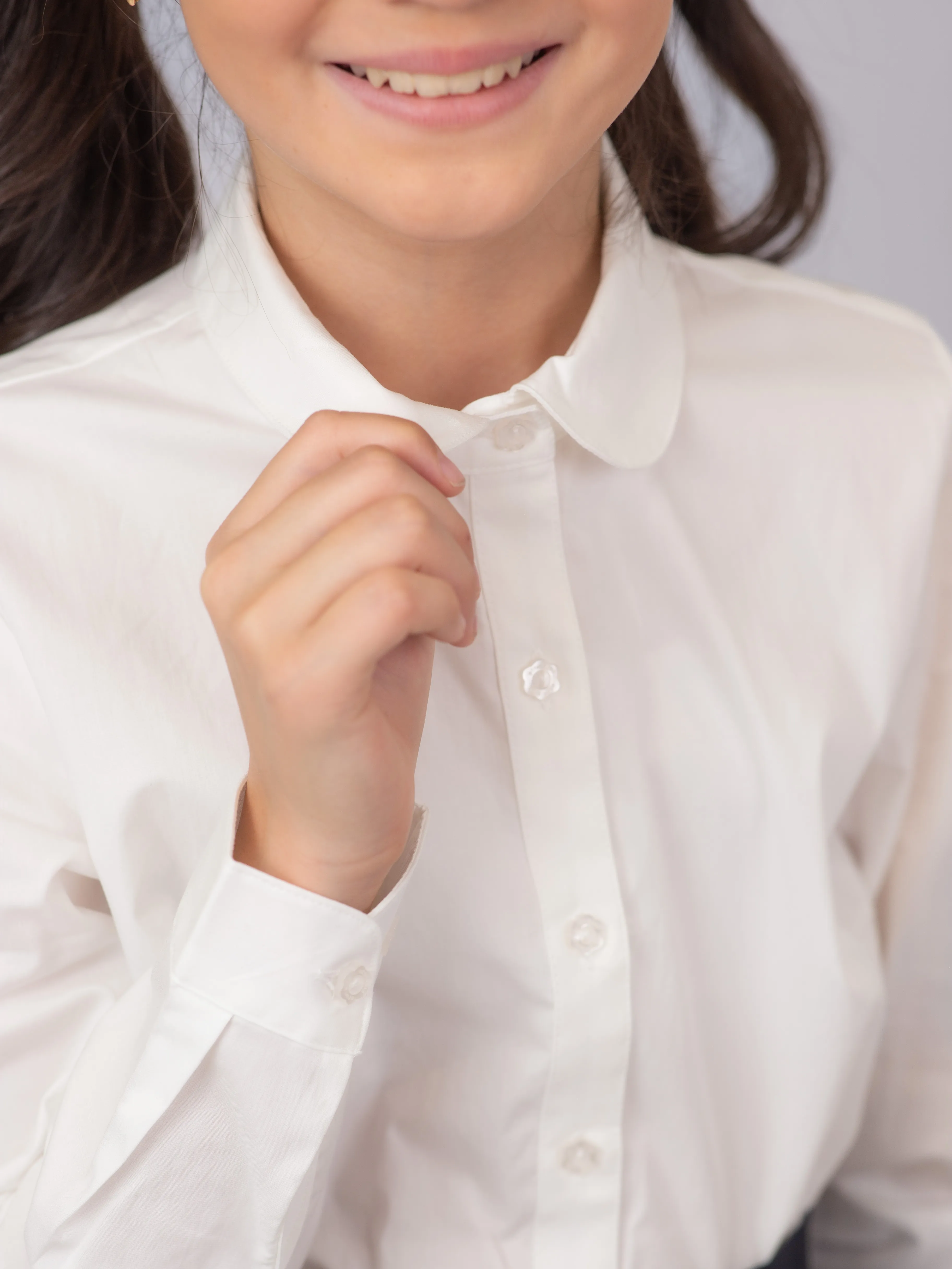 Классический крой с аккуратным воротничком и сдержанный дизайн соответствуют требованиям школьного дресс-кода. Блузка подходит как для повседневного ношения, так и для официальных школьных мероприятий.