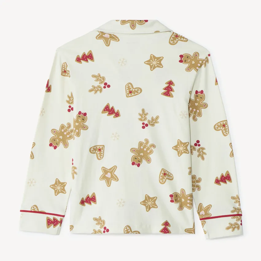 Пижама для девочки с длинным рукавом из мягкого 100% хлопка — идеальный выбор для уютных зимних вечеров. Украшена ярким новогодним принтом по всей поверхности, создающим праздничное настроение. Верх на пуговицах с классическим отложным воротником, низ на мягкой резинке — для максимального комфорта во сне и дома.