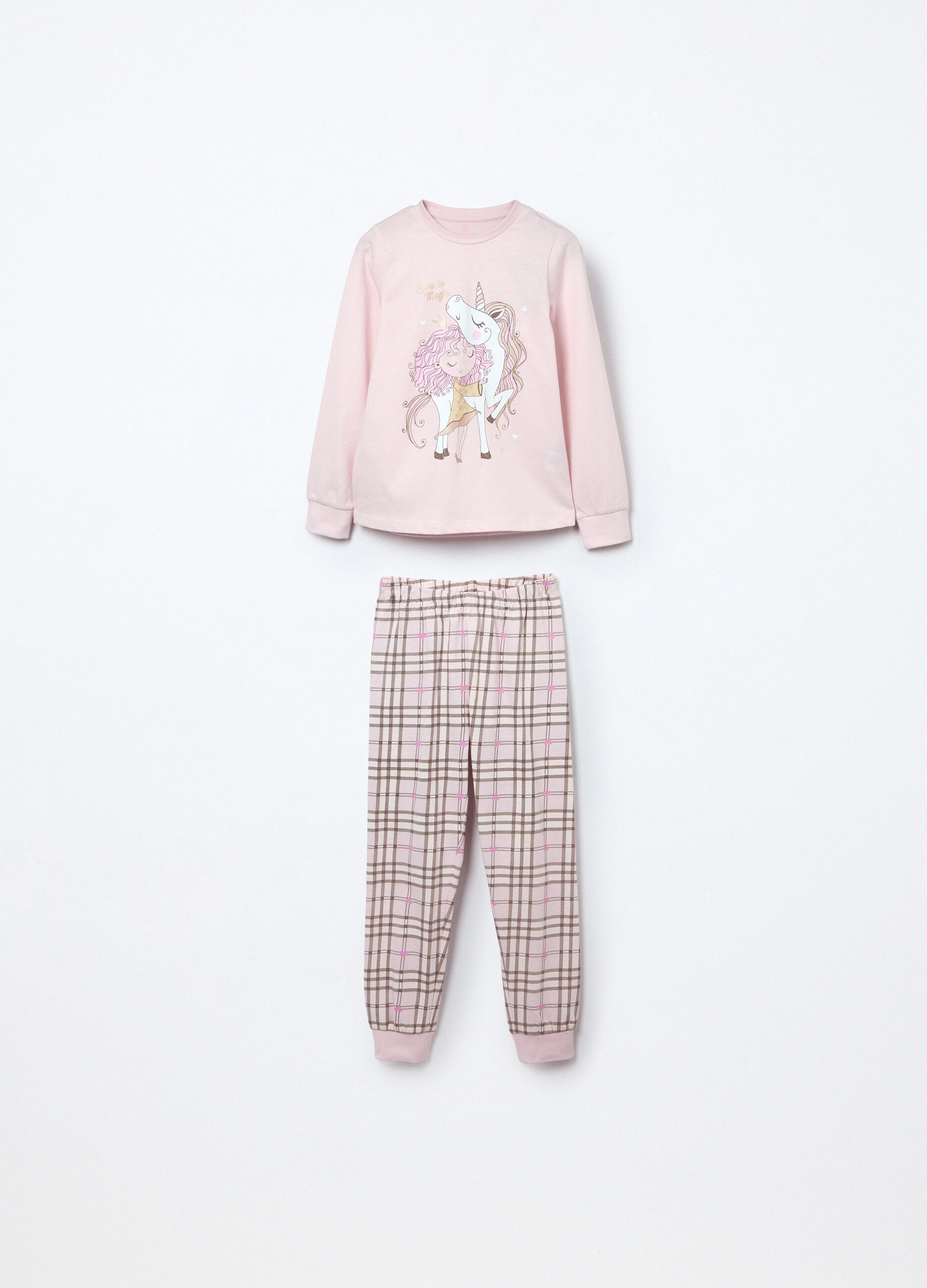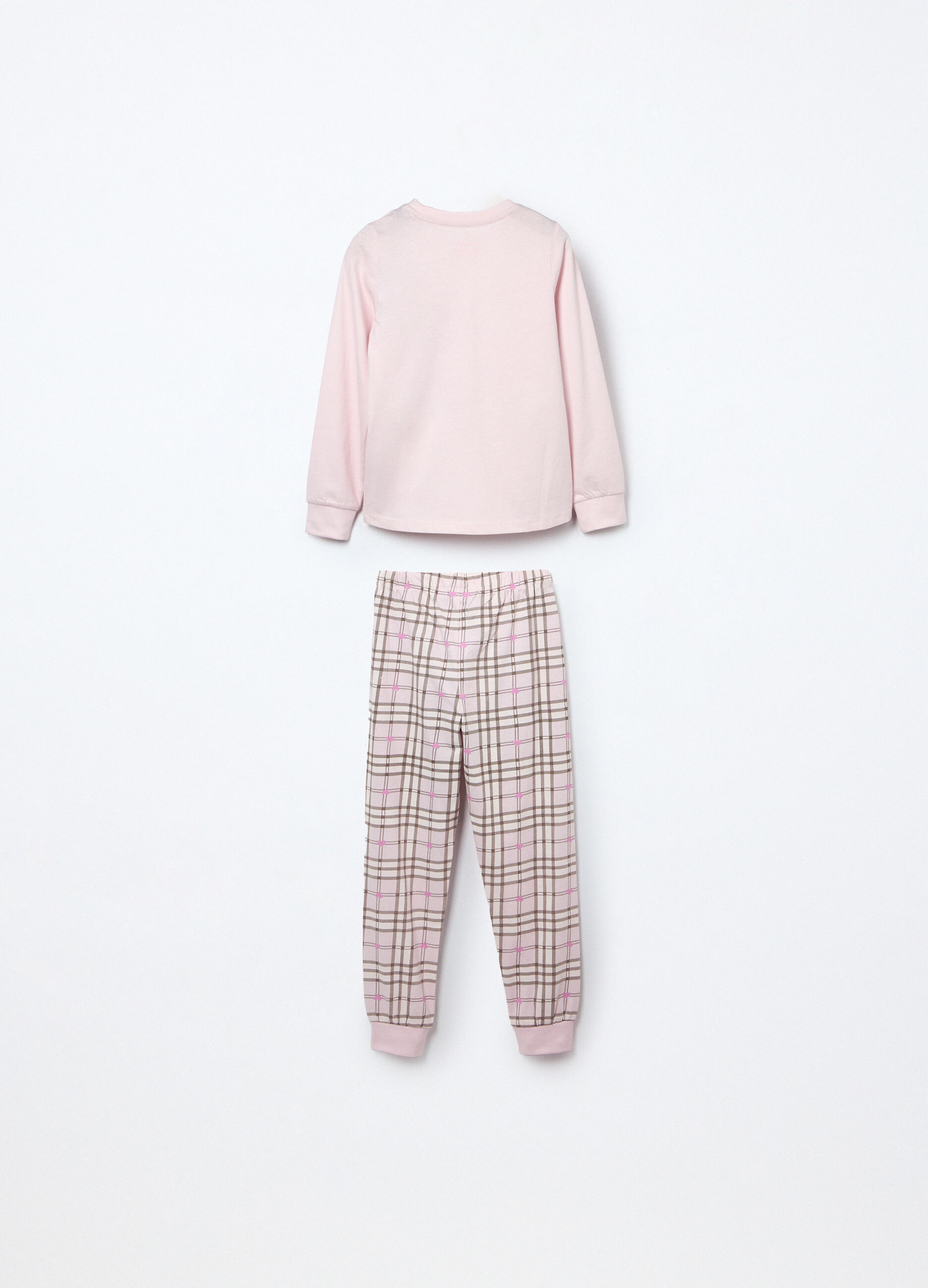 | Пижама с длинным рукавом из мягкого хлопкового трикотажа обеспечивает комфорт и уют во время сна. Верх с круглым вырезом украшен стильным принтом, добавляющим образу лёгкую изюминку. Брюки на удобной резинке выполнены в классическом клетчатом узоре, что придаёт комплекту гармоничный и современный вид. Натуральная ткань приятна к телу и позволяет коже дышать, делая пижаму отличным выбором для повседневного отдыха и ночного сна. |