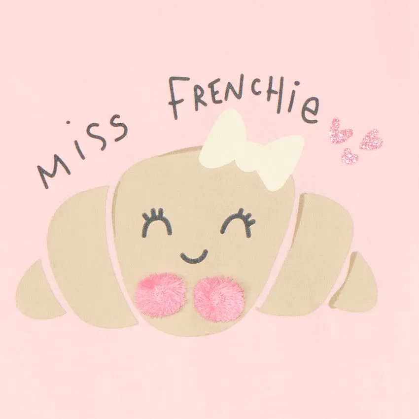 Футболка украшена оригинальным принтом в виде полумесяца на передней части, дополненным пушистыми помпонами и пайетками, что придает образу игривость и особое очарование.