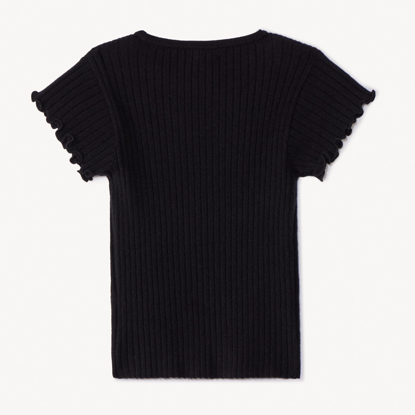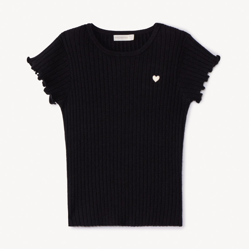 | Мягкий и эластичный джемпер из рубчатого трикотажа — идеальный базовый элемент летнего гардероба. Модель с короткими рукавами и круглым вырезом горловины. Низ и рукава украшены волнистой отделкой бурдонным швом, придающей образу нежность и игривость. Изюминка дизайна — вышивка в виде сердца золотым люрексом сбоку. Состав: 95% хлопок, 5% эластан — мягко тянется и хорошо садится по фигуре. |