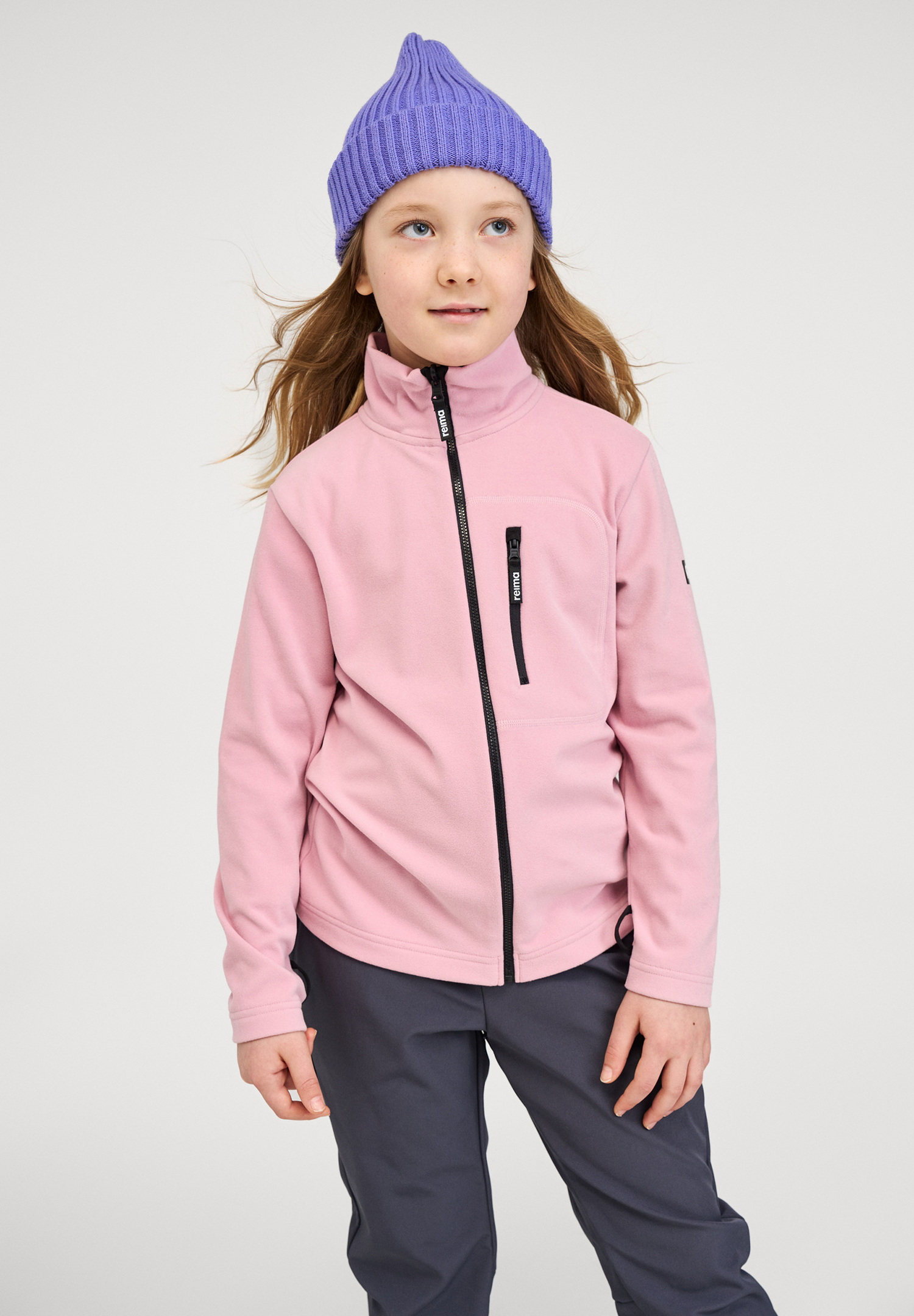 Легкая и удобная модель изготовлена из переработанных материалов. Кардиган имеет манжеты на резинке, молнию по всей длине с защитой для подбородка для комфортного одевания и боковые карманы, чтобы хранить безделушки или согреть руки.