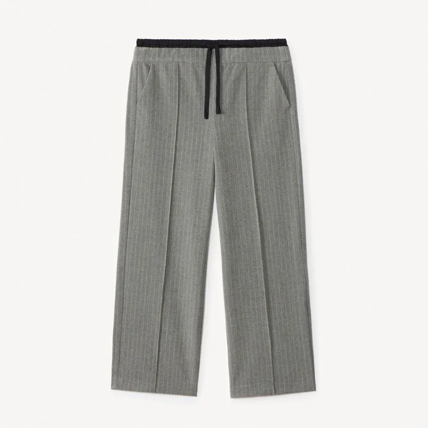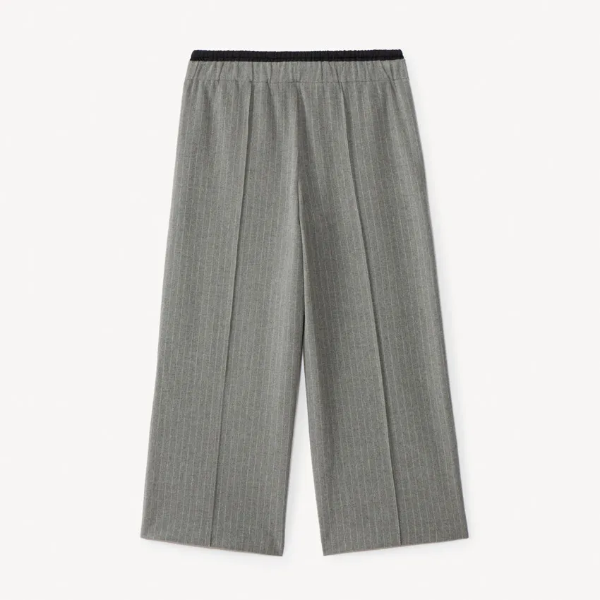 Широкие фланелевые брюки для девочки — стильная и удобная модель для повседневных и нарядных образов. Двойной эластичный пояс с контрастной вставкой и шнурком обеспечивает комфортную посадку, а складки по всей длине штанин придают образу аккуратность и элегантность. Два косых кармана спереди делают модель практичной.