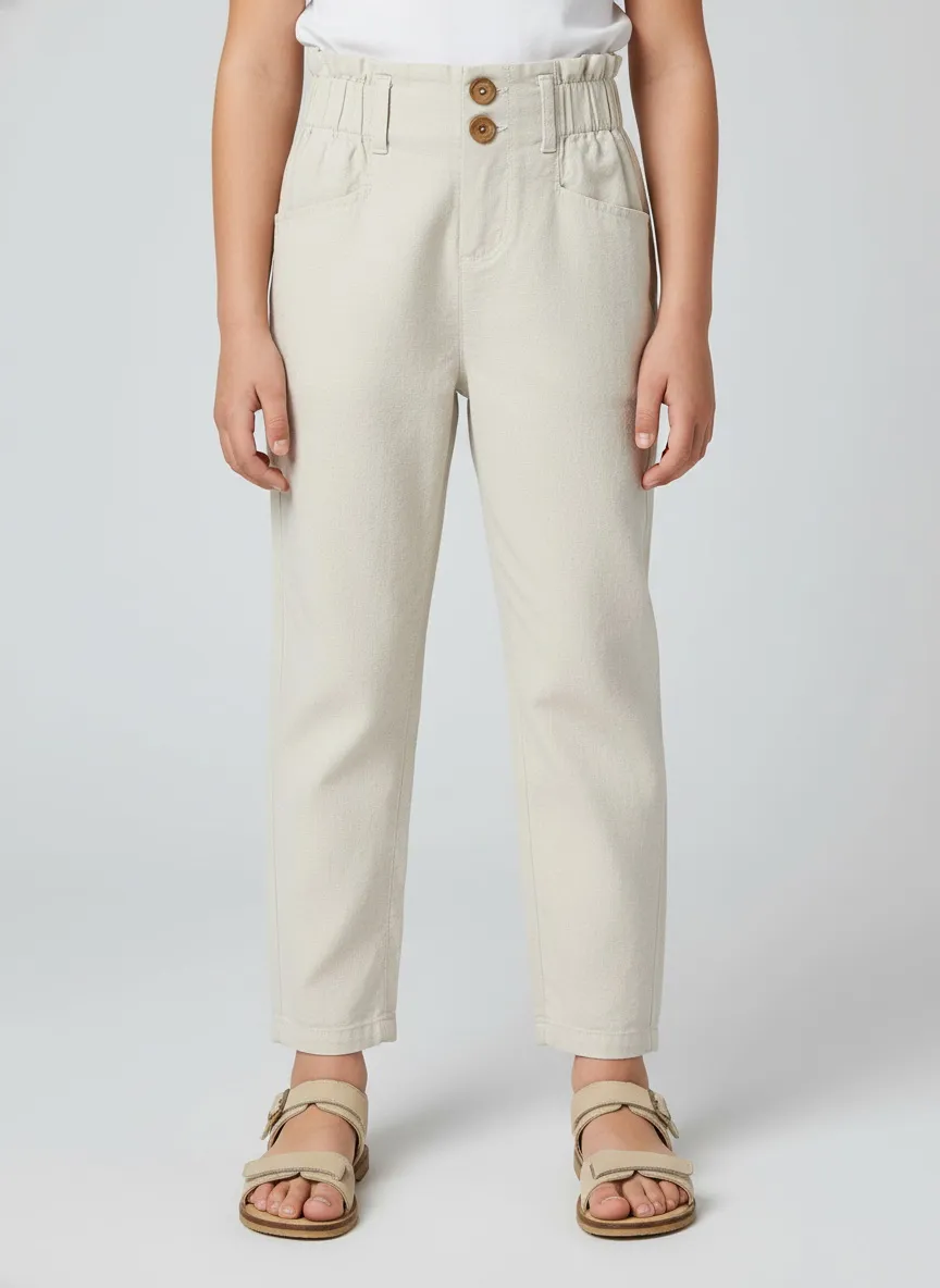 Модель выполнена из приятной к телу и дышащей ткани: 55% лиоцелл, 25% хлопок, 20% лён. Натуральные материалы обеспечивают лёгкость и комфорт в течение всего дня. Практичные два боковых кармана делают брюки удобными для повседневных прогулок и активного отдыха. Стильная и универсальная модель для детского гардероба.