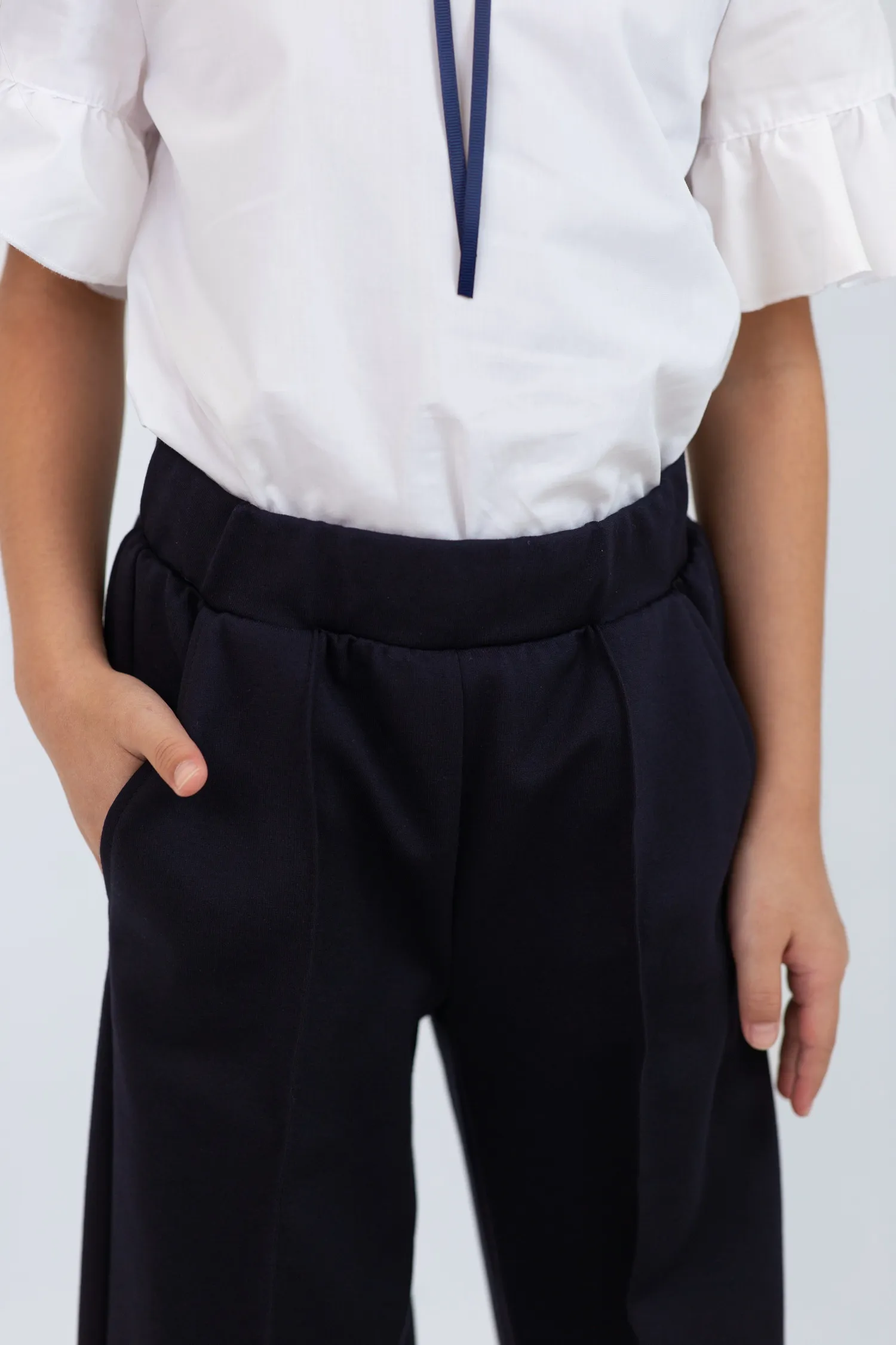 Брюки легко сочетаются с различными топами, футболками и свитерами, создавая разнообразные образы для школы, прогулок или других активностей. Практичные и стильные, они станут незаменимой частью гардероба любой девочки.