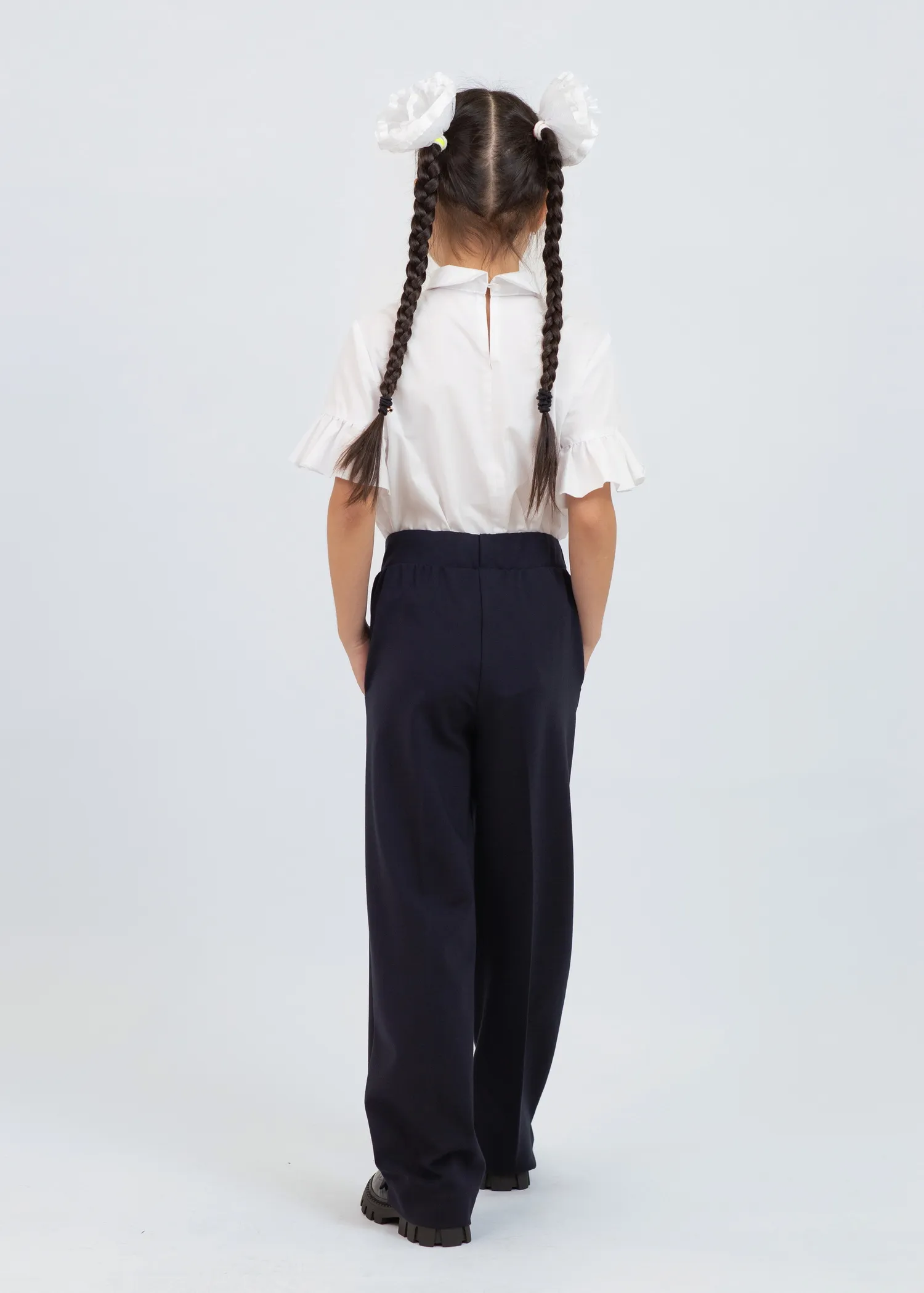 Эти стильные брюки для девочек  идеально подойдут для повседневного ношения и создания модных образов. Брюки выполнены из качественного материала, обеспечивающего комфорт и долговечность. Эластичный пояс обеспечивает удобную посадку, а классический крой подходит для различных типов фигуры.