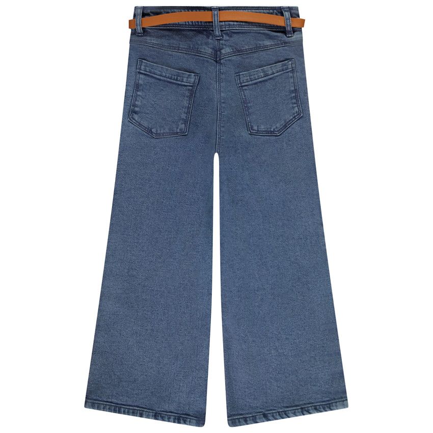 | Широкие джинсы для девочек из мягкой хлопковой ткани с добавлением эластана для комфорта и свободы движений. Модель дополнена шлевками и поясом из искусственной кожи. Удобная застёжка спереди — крючок, пуговица и молния. Сзади — два накладных кармана. Универсальный фасон подойдёт как для повседневных, так и для более нарядных образов. |