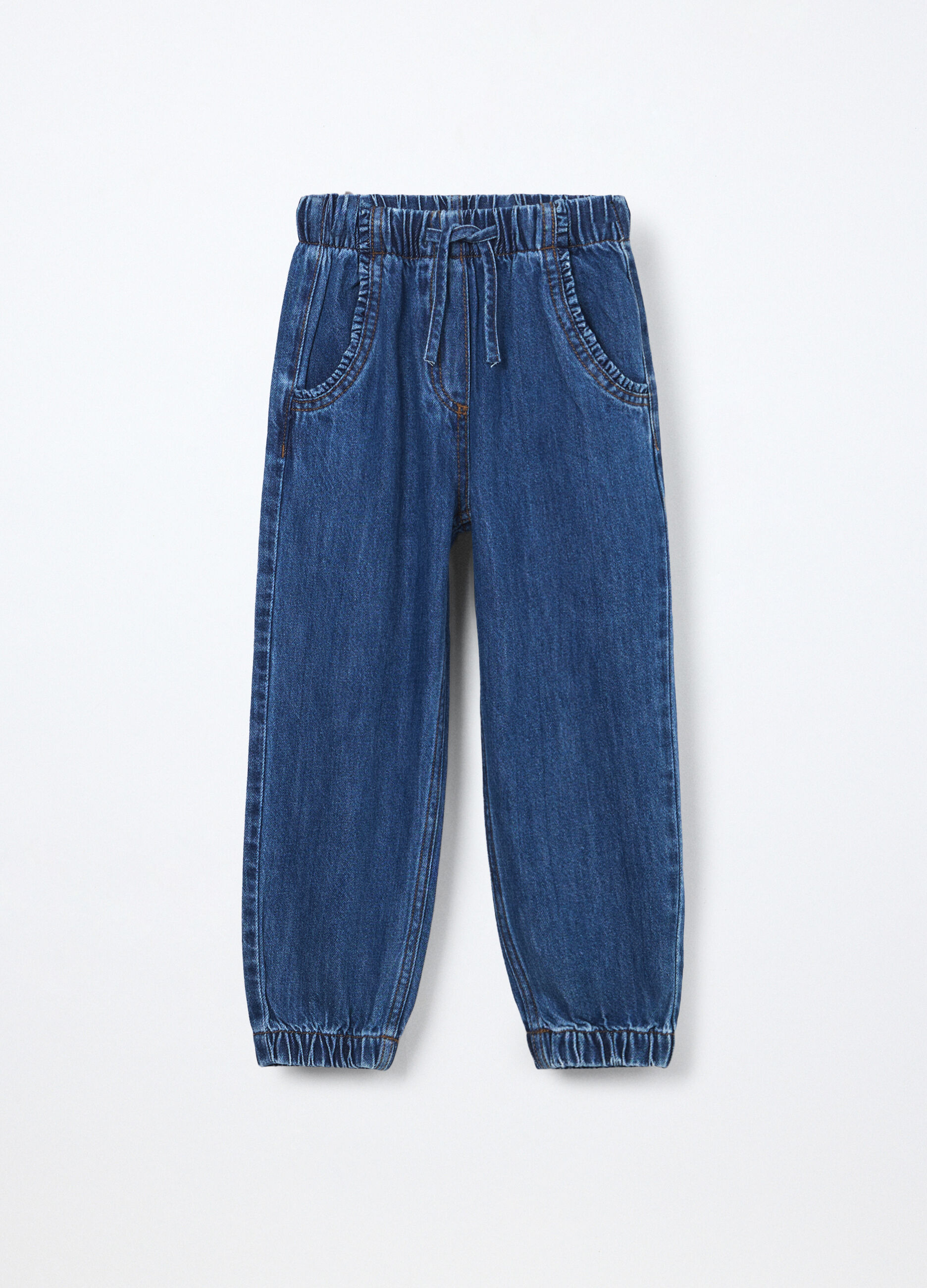 | Джинсовые брюки-джоггеры из мягкой хлопковой смеси. Модель оснащена эластичным поясом со шнурком для комфортной посадки и двумя практичными передними карманами. Манжеты на резинке обеспечивают удобство и сохраняют форму. Выполнены в однотонном цвете. |