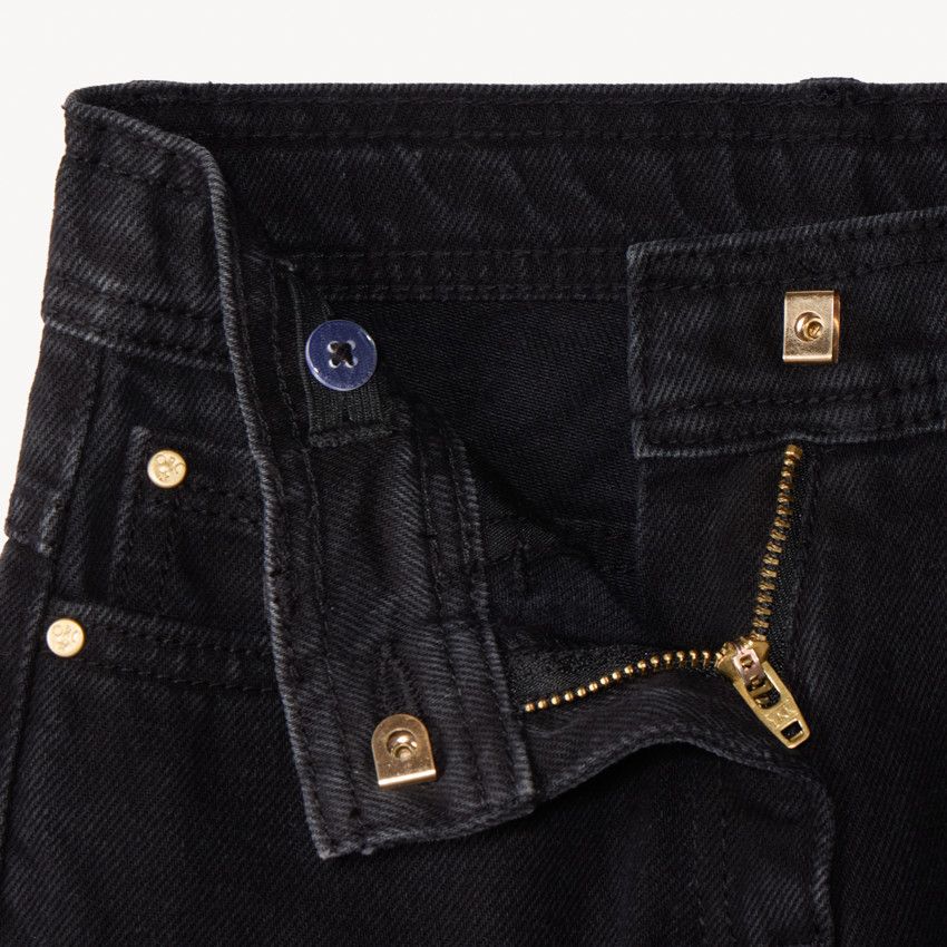 Модель оснащена застёжкой и молнией, обеспечивающими удобную посадку. Спереди расположены два кармана, добавляющие практичность и завершающие классический джинсовый дизайн. Свободный крой не сковывает движений и обеспечивает комфорт в течение дня.