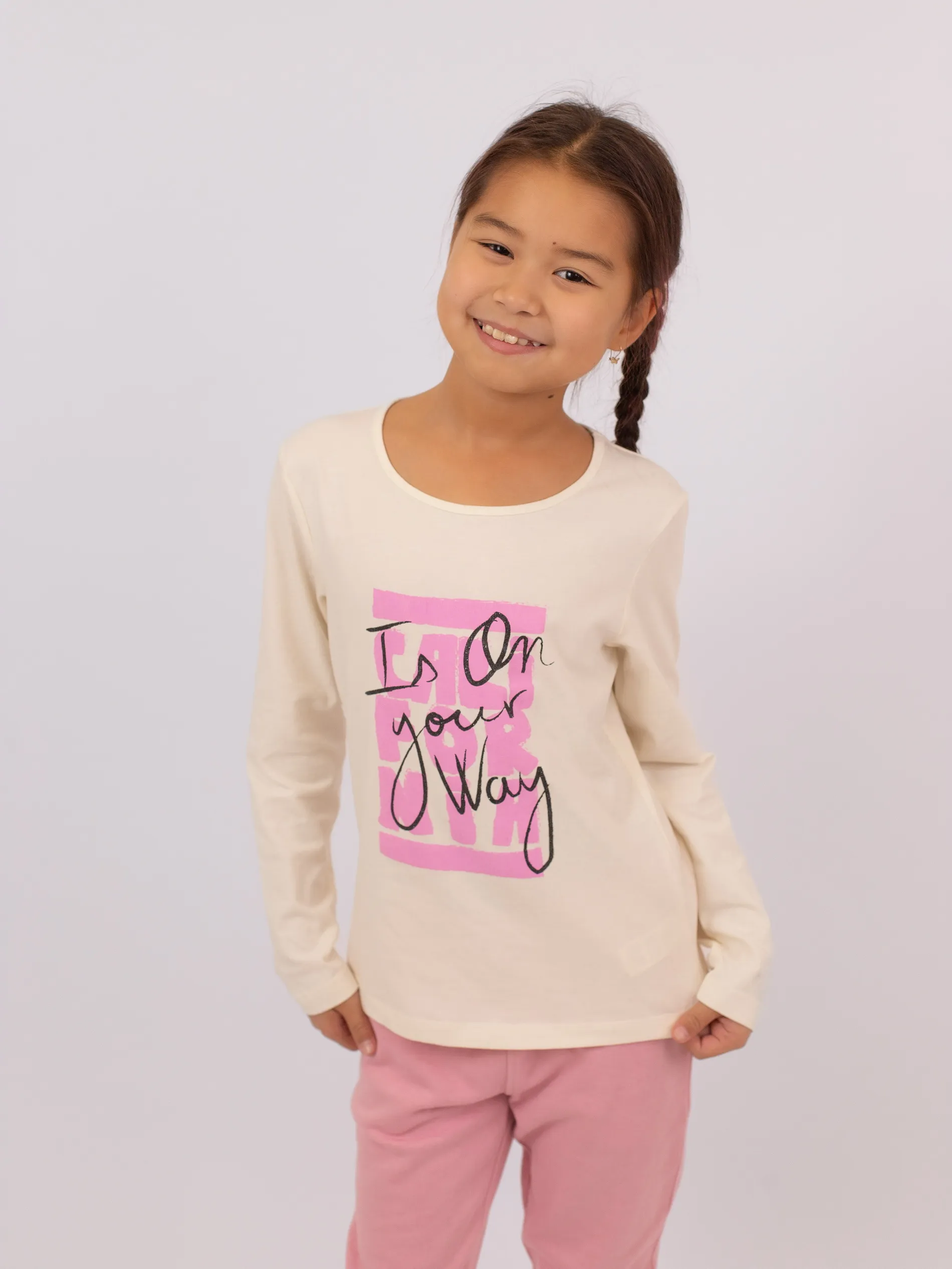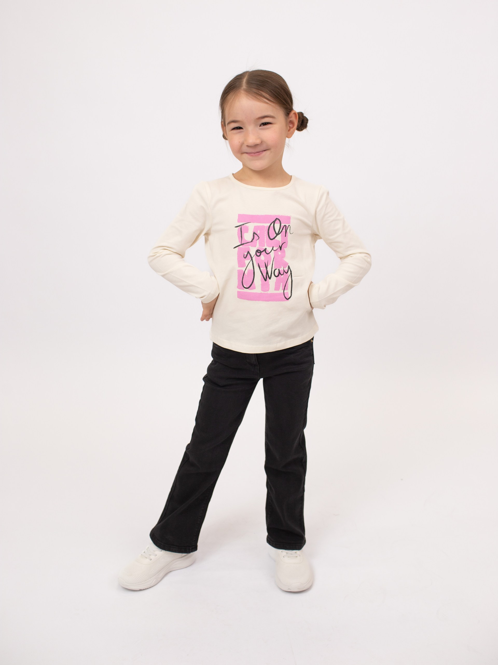 | Лонгслив из мягкого трикотажа с круглым вырезом. Перед украшен декоративным принтом с блестящими пайетками, спинка — однотонная. Удобная и стильная модель для повседневной носки. |