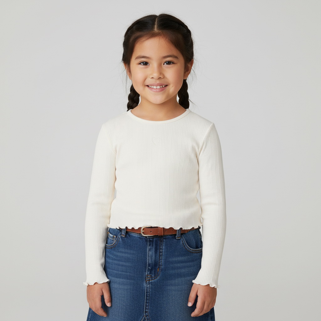 На передней части расположено аккуратное вышитое сердечко, которое добавляет образу изящный и стильный акцент. Футболка легко сочетается с джинсами, юбками и леггинсами, подойдёт для школы, прогулок и повседневной носки.