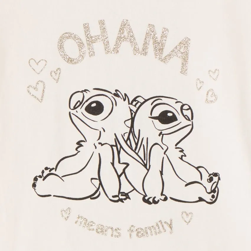 По центру —красочный принт с любимым персонажем Стичем, который обязательно понравится юным поклонницам мультфильма.