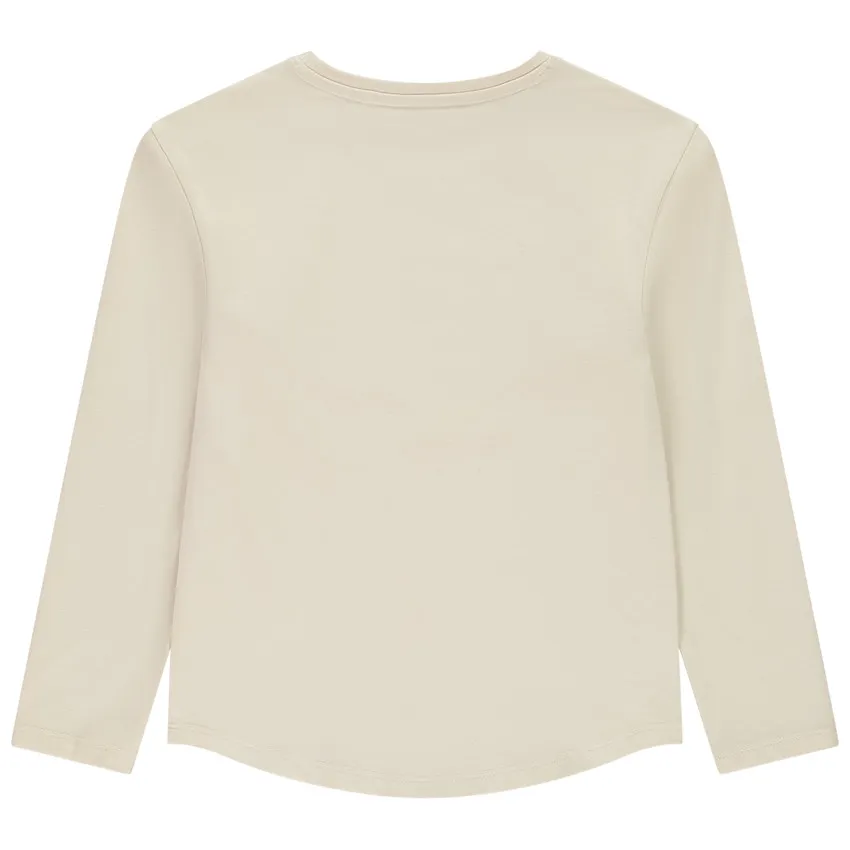 Футболка с длинным рукавом для девочки из мягкого эластичного трикотажа — удобный вариант на каждый день. Яркий принт в центре добавляет образу игривости и стиля. Модель приятна к телу, хорошо тянется и сохраняет форму после стирки.
