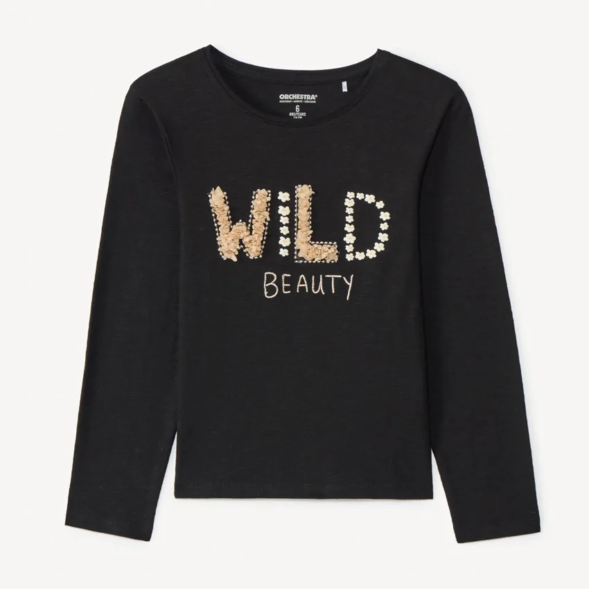 Футболка с длинным рукавом для девочки из мягкого хлопкового трикотажа — удобный и универсальный вариант на каждый день. Яркий принт по центру добавляет образу игривости и стиля. Материал из 100% хлопка приятен к телу, дышит и сохраняет форму после стирки, обеспечивая комфорт в течение всего дня.