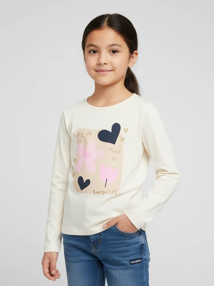 Футболка с длинными рукавами для девочки — универсальный и стильный вариант для повседневной носки и праздничных случаев, включая день рождения. Модель легко вписывается в гардероб и подходит как для школы, так и для прогулок.