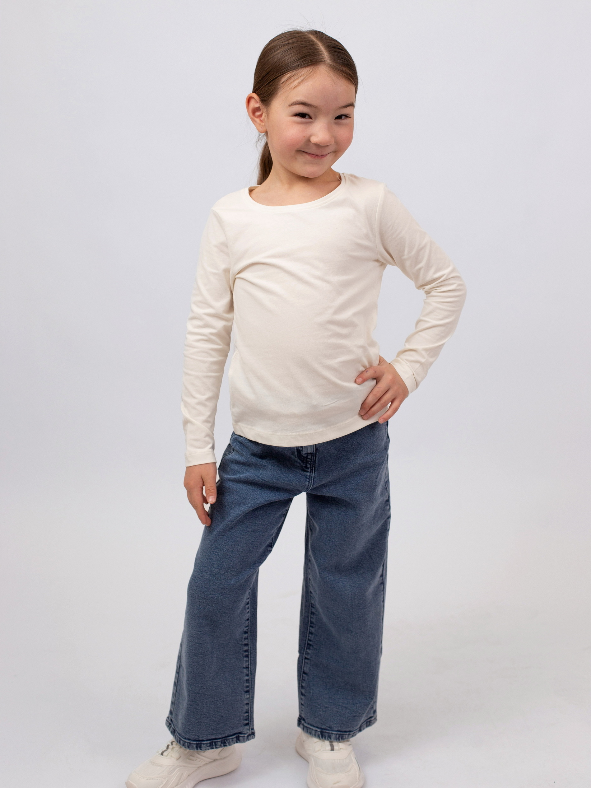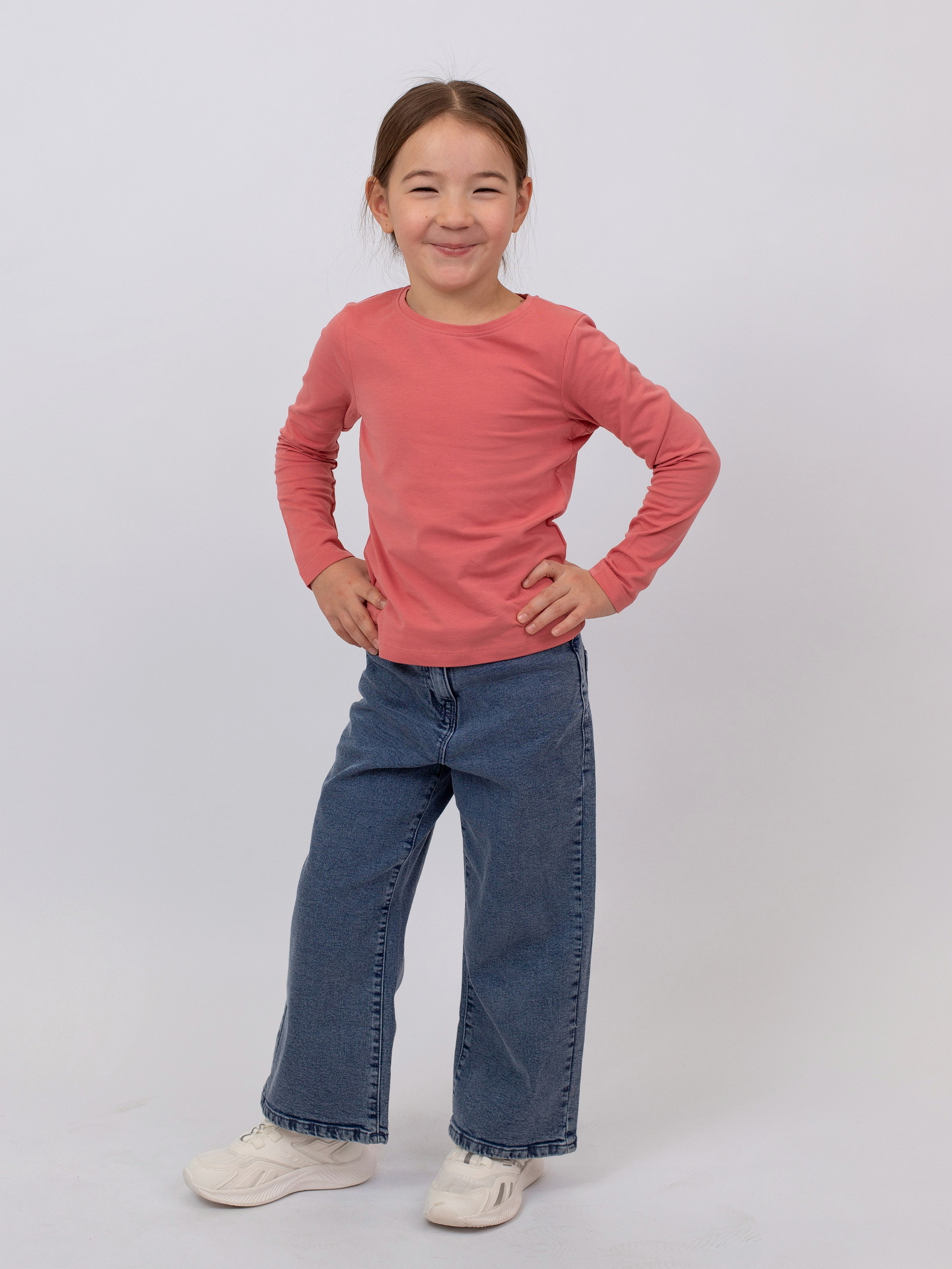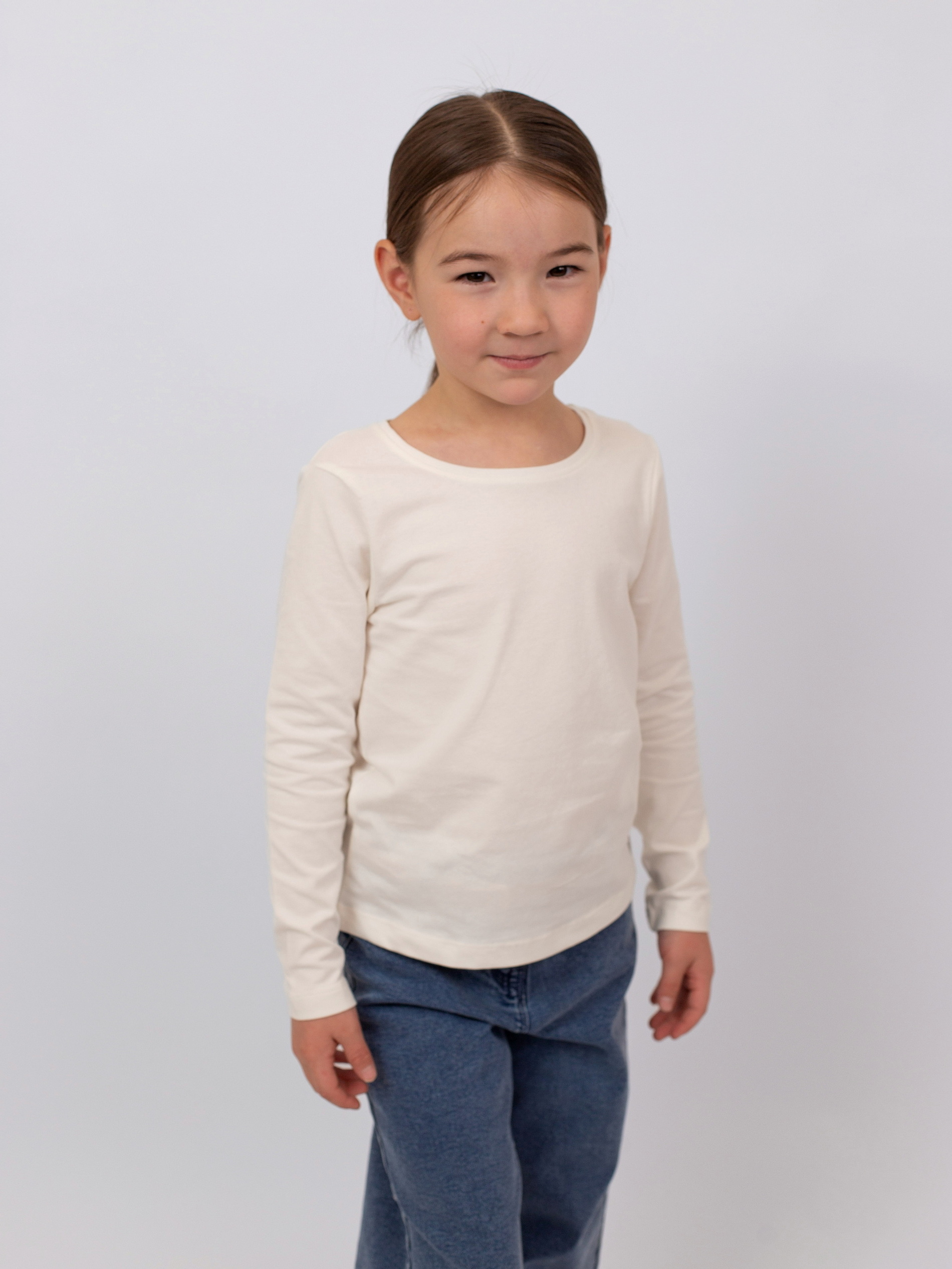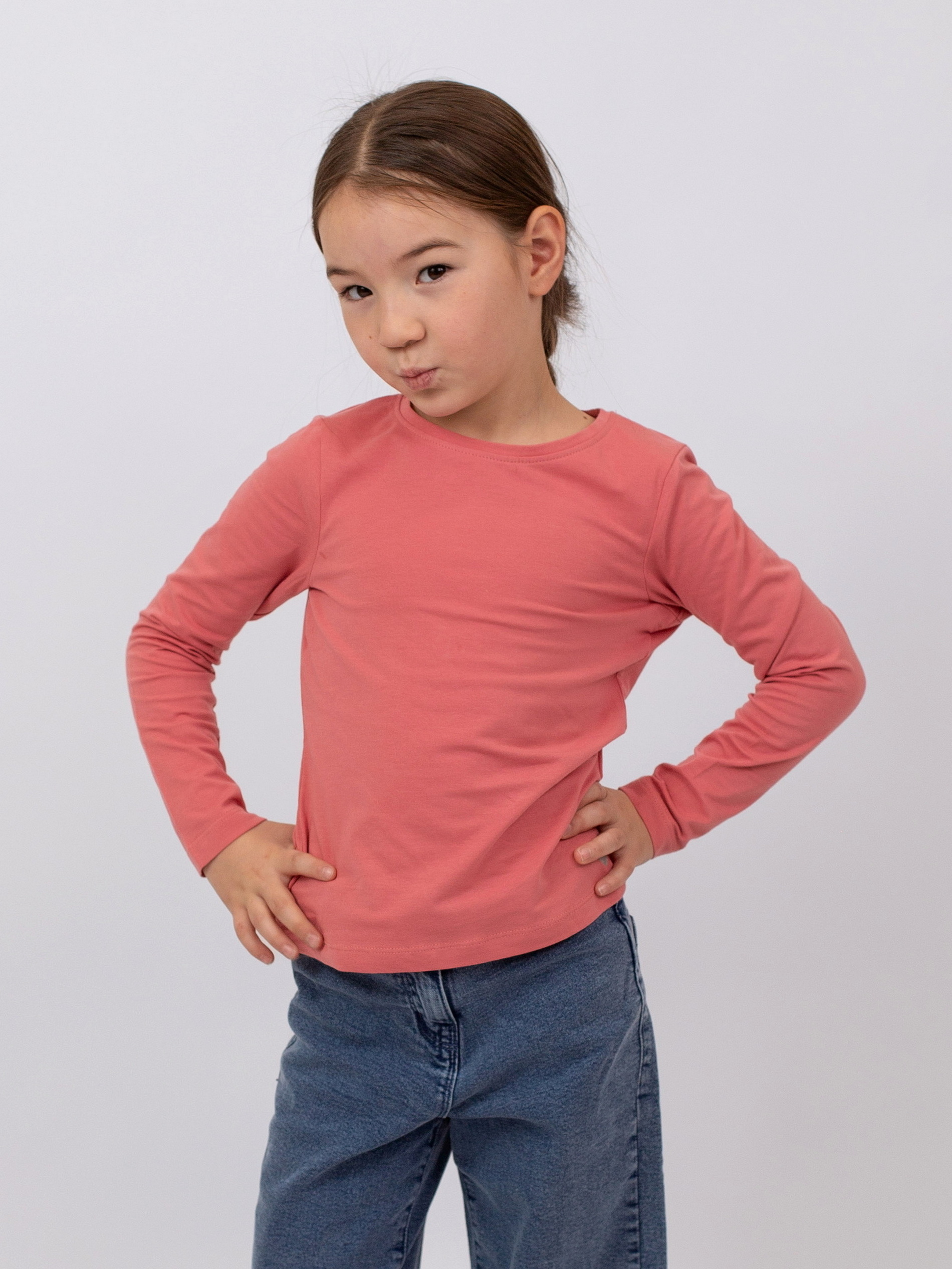 Набор из трёх футболок с длинными рукавами из мягкого трикотажа. Модели однотонных цветов с круглым вырезом горловины и небольшим принтом в виде сердечка спереди снизу слева.