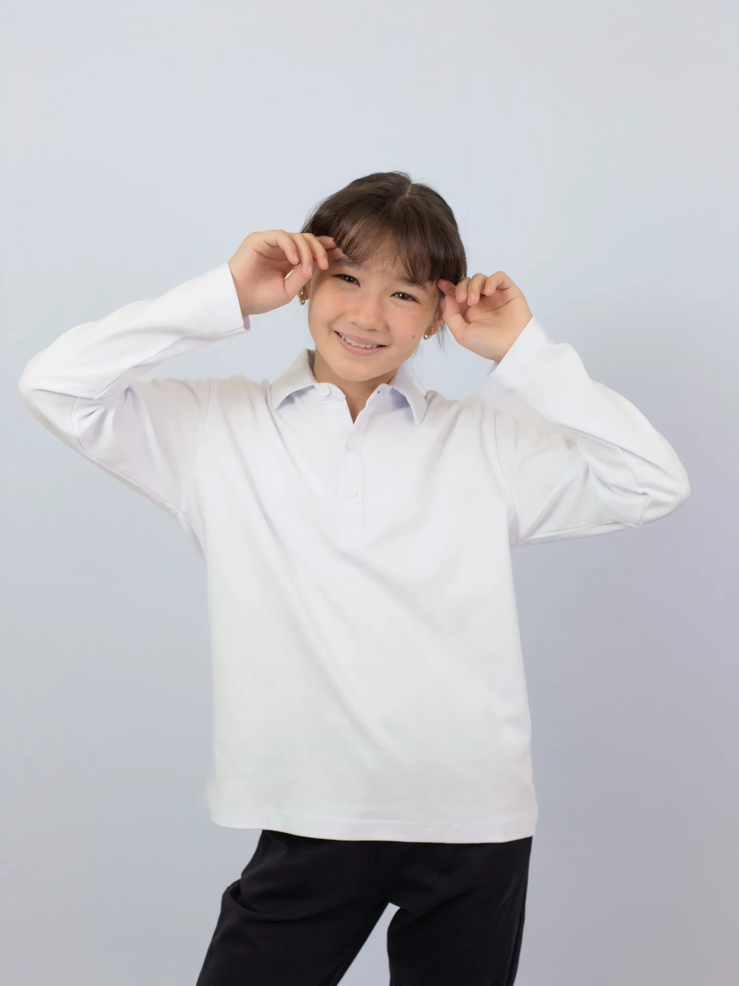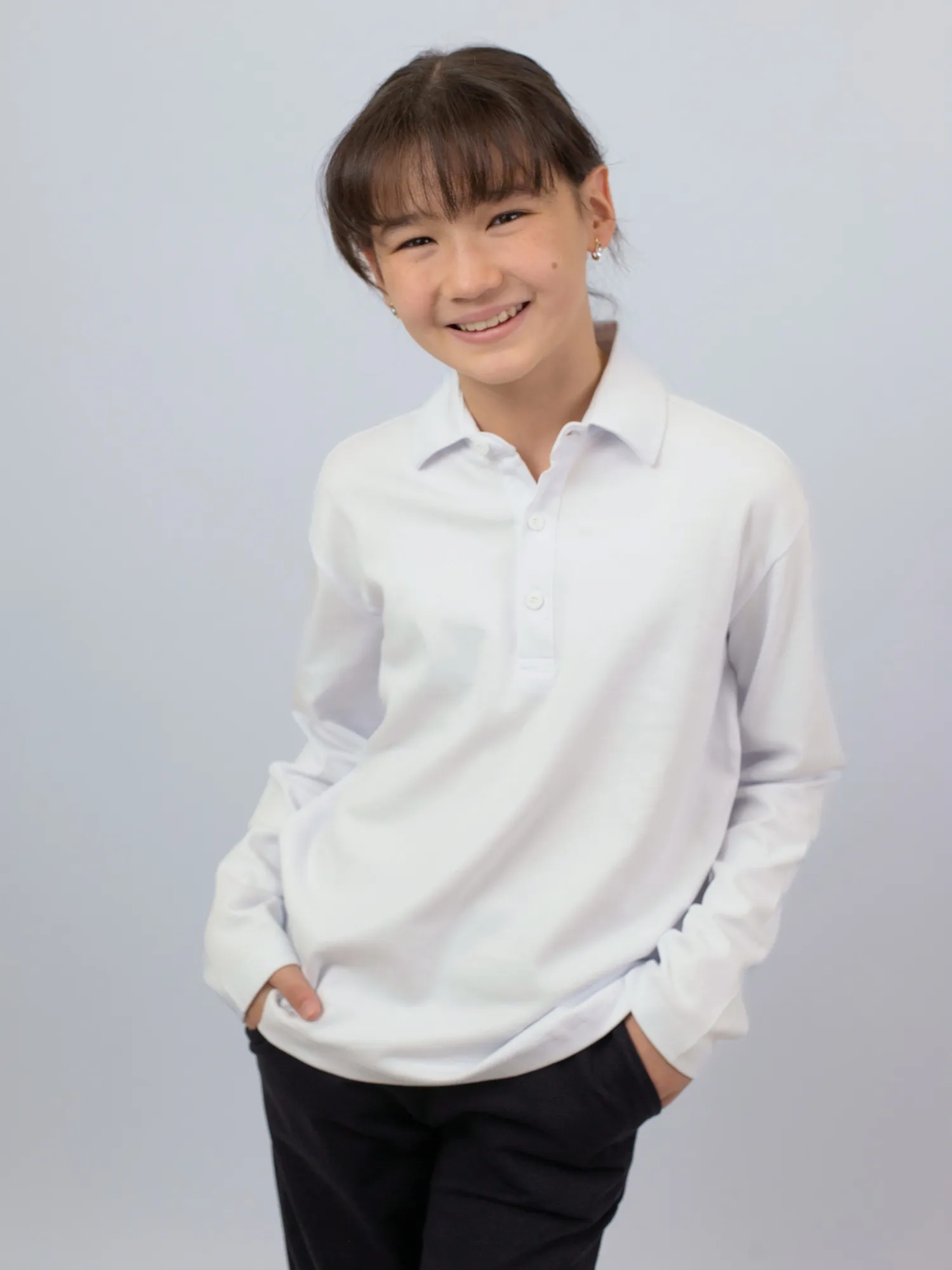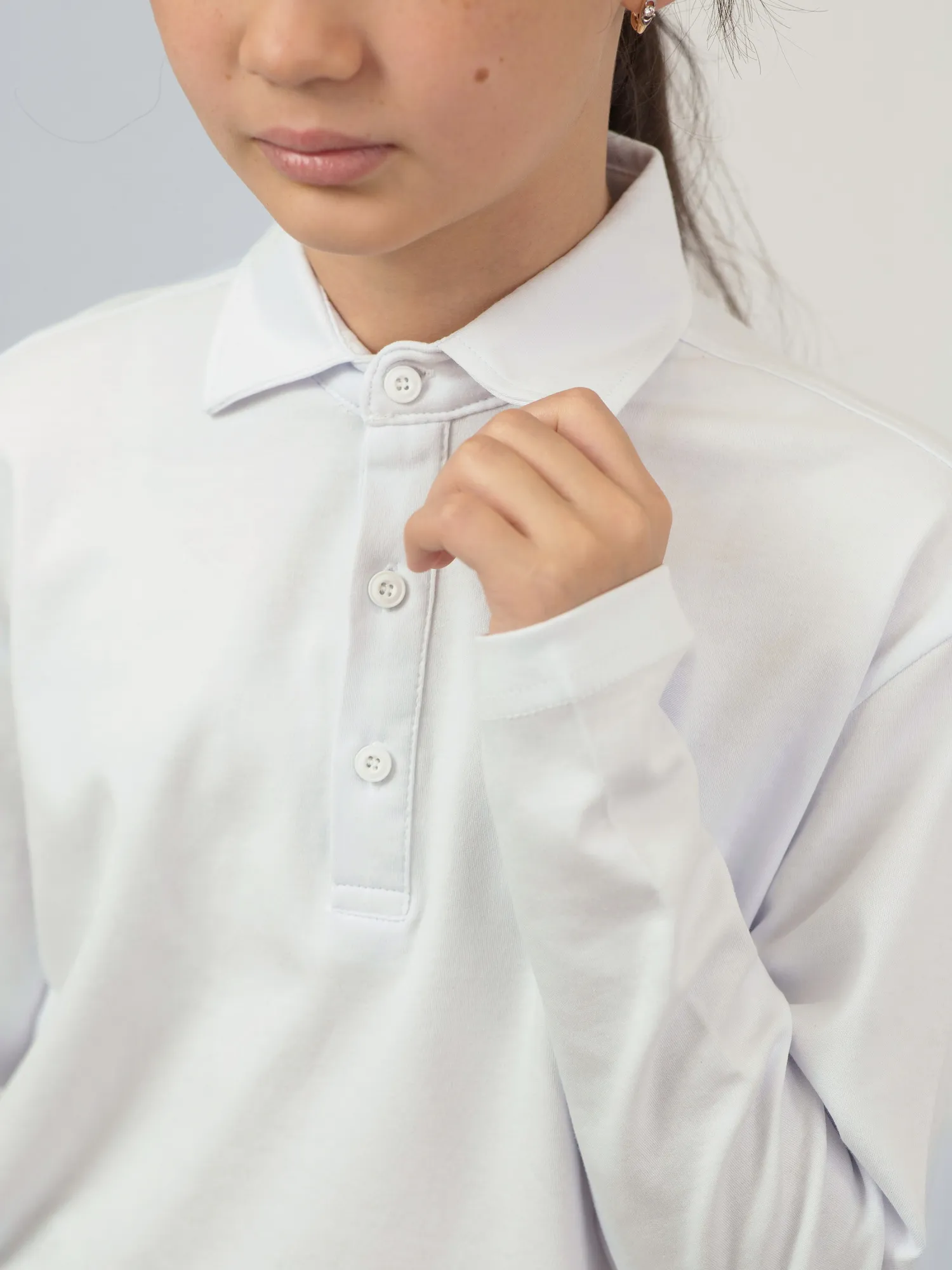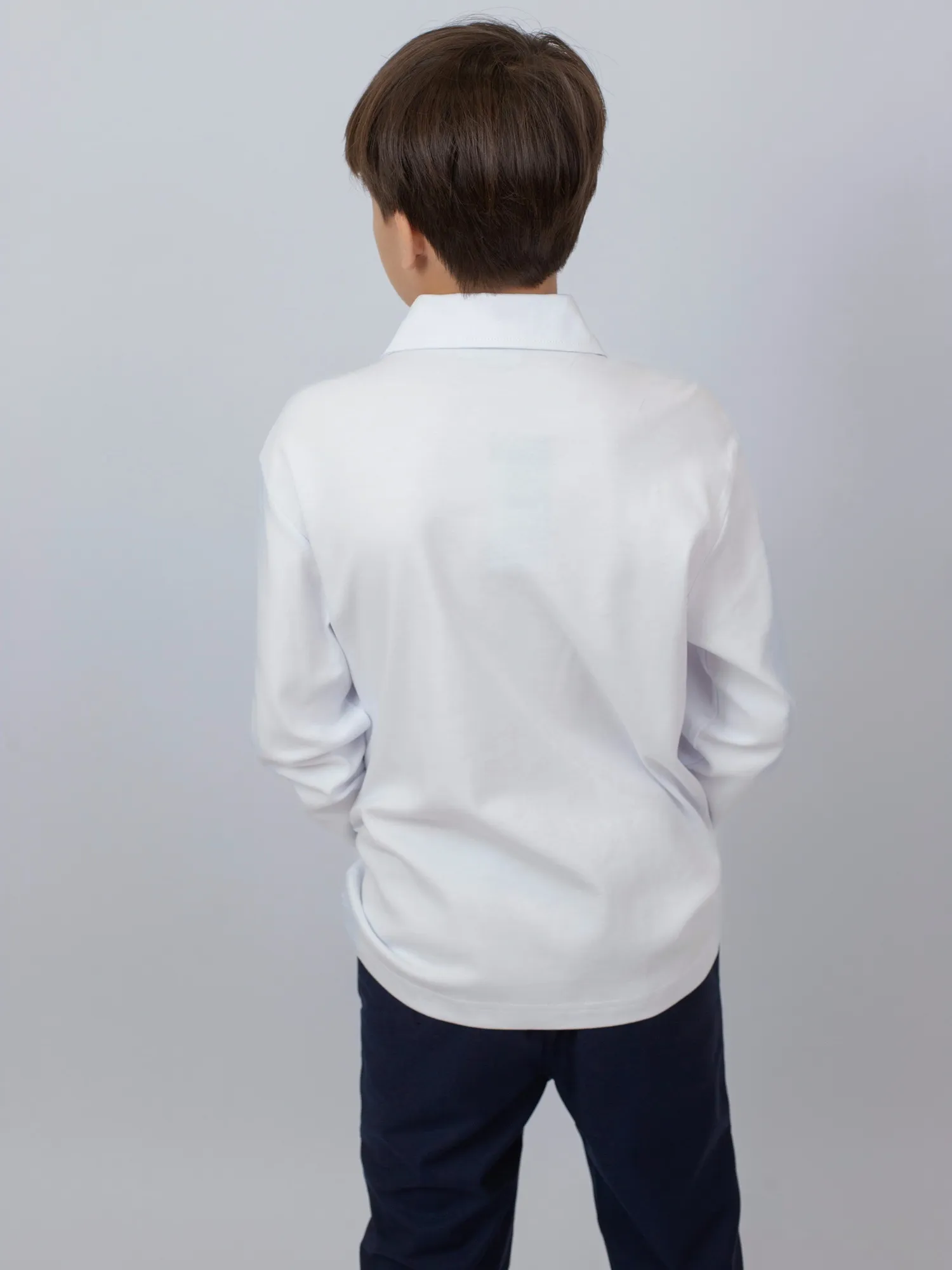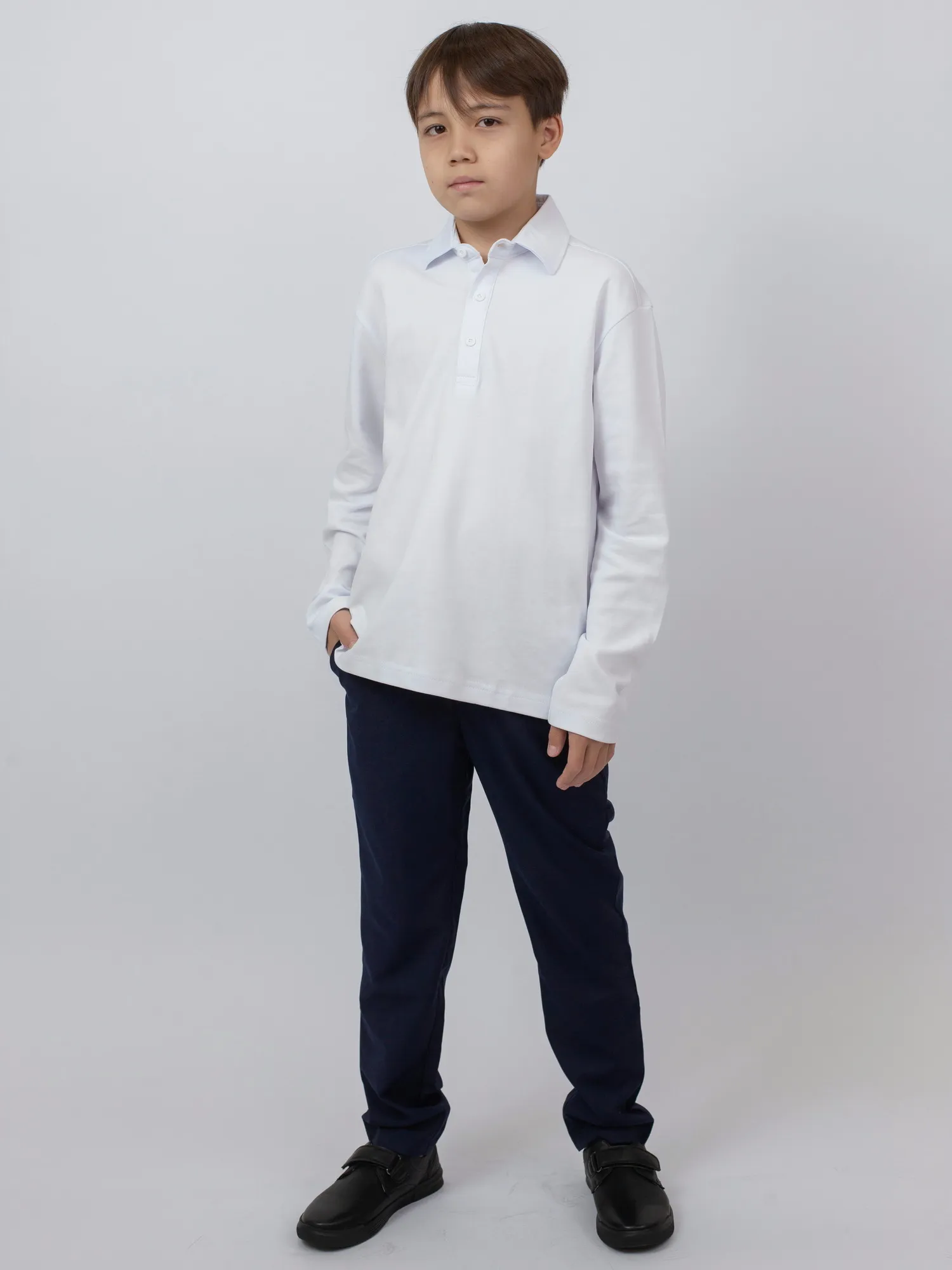Модель большимерит на два размера. Классическое школьное поло с длинными рукавами, выполненное из 100% хлопка — натурального, мягкого и дышащего материала, обеспечивающего комфорт в течение всего дня.
