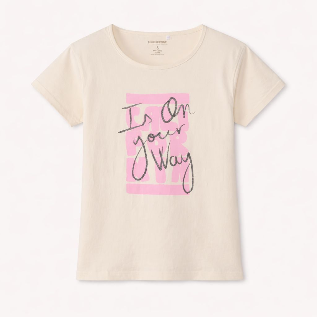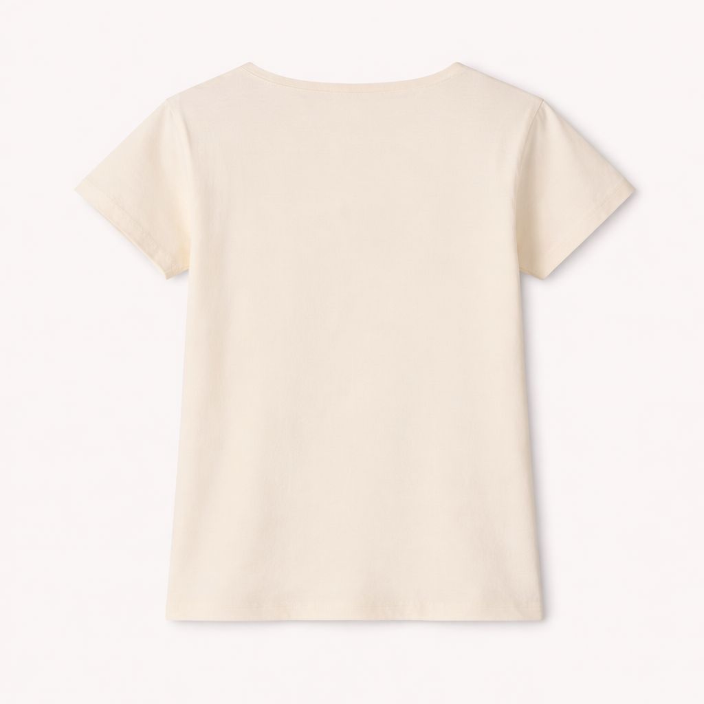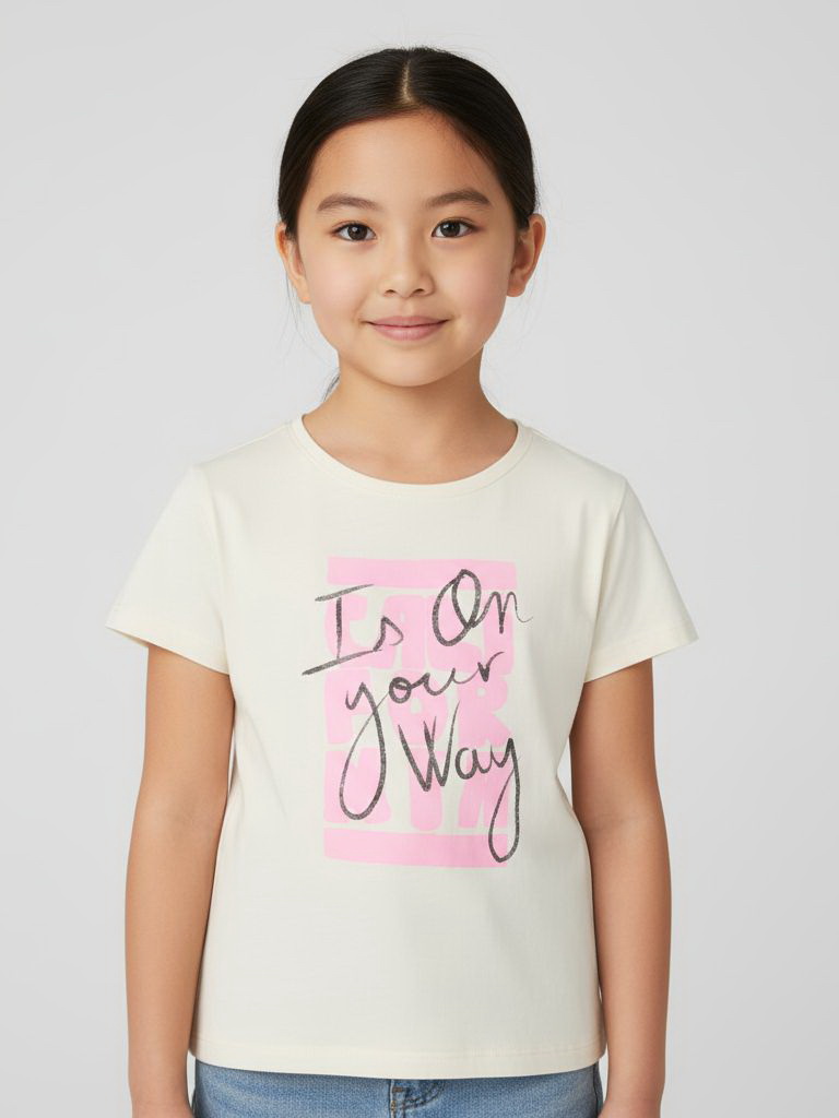 Футболка для девочки станет стильным и нежным элементом повседневного гардероба. Модель выполнена в мягком светлом оттенке из приятного к телу трикотажа, который обеспечивает комфорт в течение всего дня.