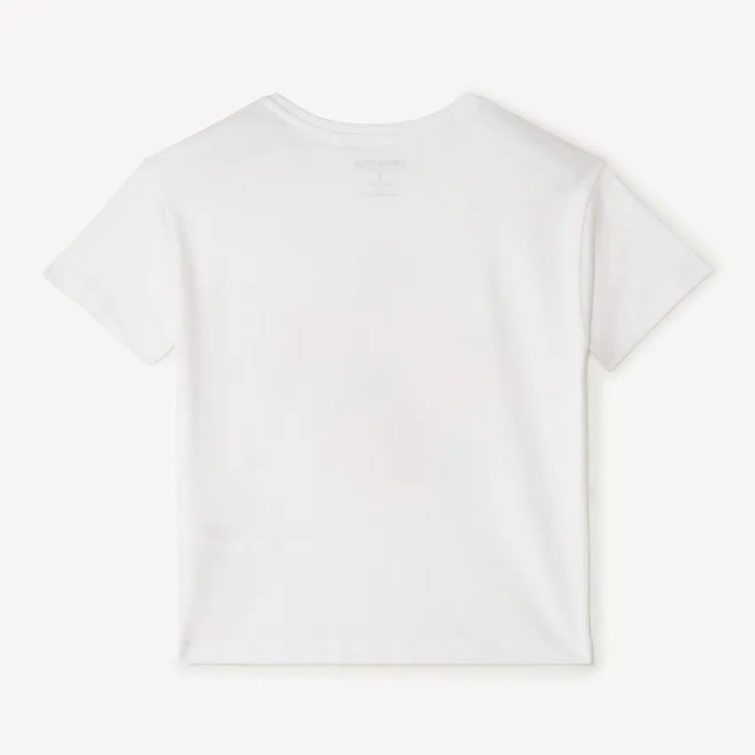 Лёгкая футболка в белом цвете станет ярким и милым акцентом в детском гардеробе. Модель выполнена из мягкого трикотажа, который приятен к телу и подходит для повседневной носки.