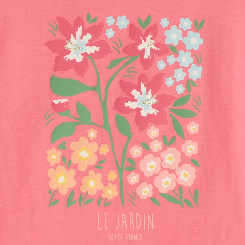 В центре расположен цветочный принт, который добавляет образу нежный и яркий акцент. Спинка выполнена в однотонном стиле.