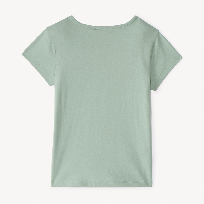 Лёгкая футболка для девочки выполнена в нежном зелёном оттенке и отлично подойдёт для повседневного летнего гардероба. Мягкая ткань приятна к телу и обеспечивает комфорт в течение всего дня.