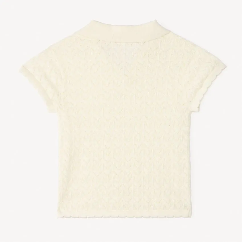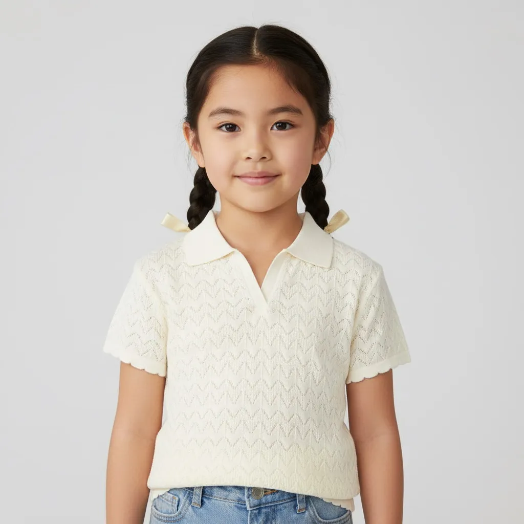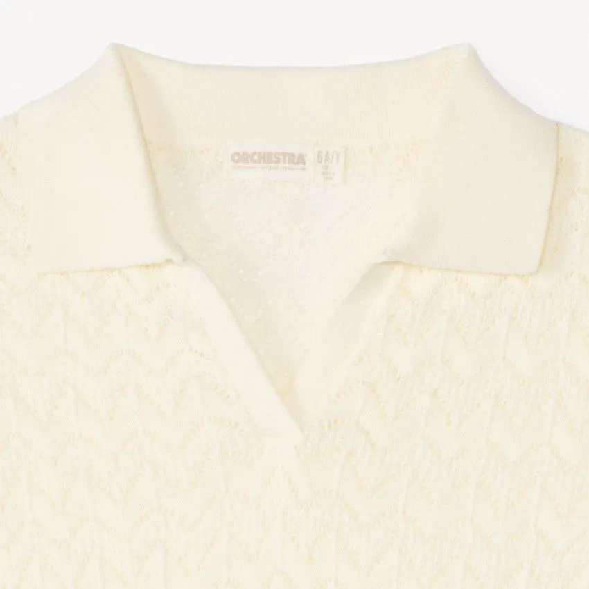 Поло с коротким рукавом для девочки ORCHESTRA — стильная и нежная модель для повседневных образов. Поло выполнено из 100% хлопка, который обеспечивает мягкость, комфорт и хорошую воздухопроницаемость. Модель дополнена классическим воротником, а ажурная вязаная текстура придаёт изделию лёгкость, изящность и особый шарм. Идеальный вариант для прогулок и аккуратных повседневных образов.