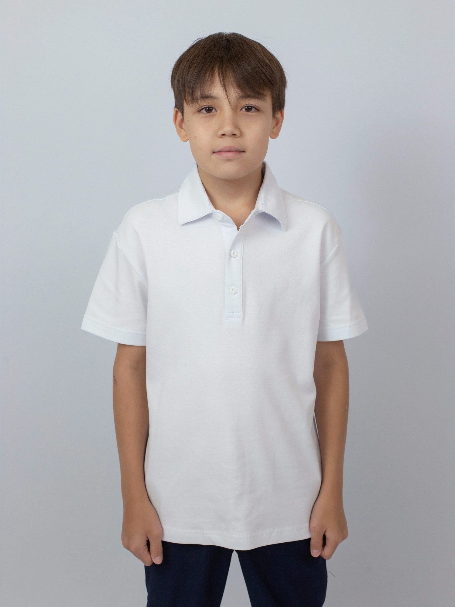 Модель большимерит на два размера. Классическое школьное поло с коротким рукавом из 100% хлопка — натурального, мягкого и дышащего материала, обеспечивающего комфорт в течение всего дня.
