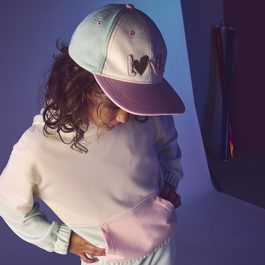 Кепка для девочек, выполненная из мягкого и дышащего хлопка, выполнила в трех цветах Спереди украшена вышитой надписью "Love", которая придает аксессуару яркий и модный акцент. Этот элемент дизайна добавляет кепке особый шарм, делая ее идеальным выбором для создания стильных и комфортных образов в любой день.