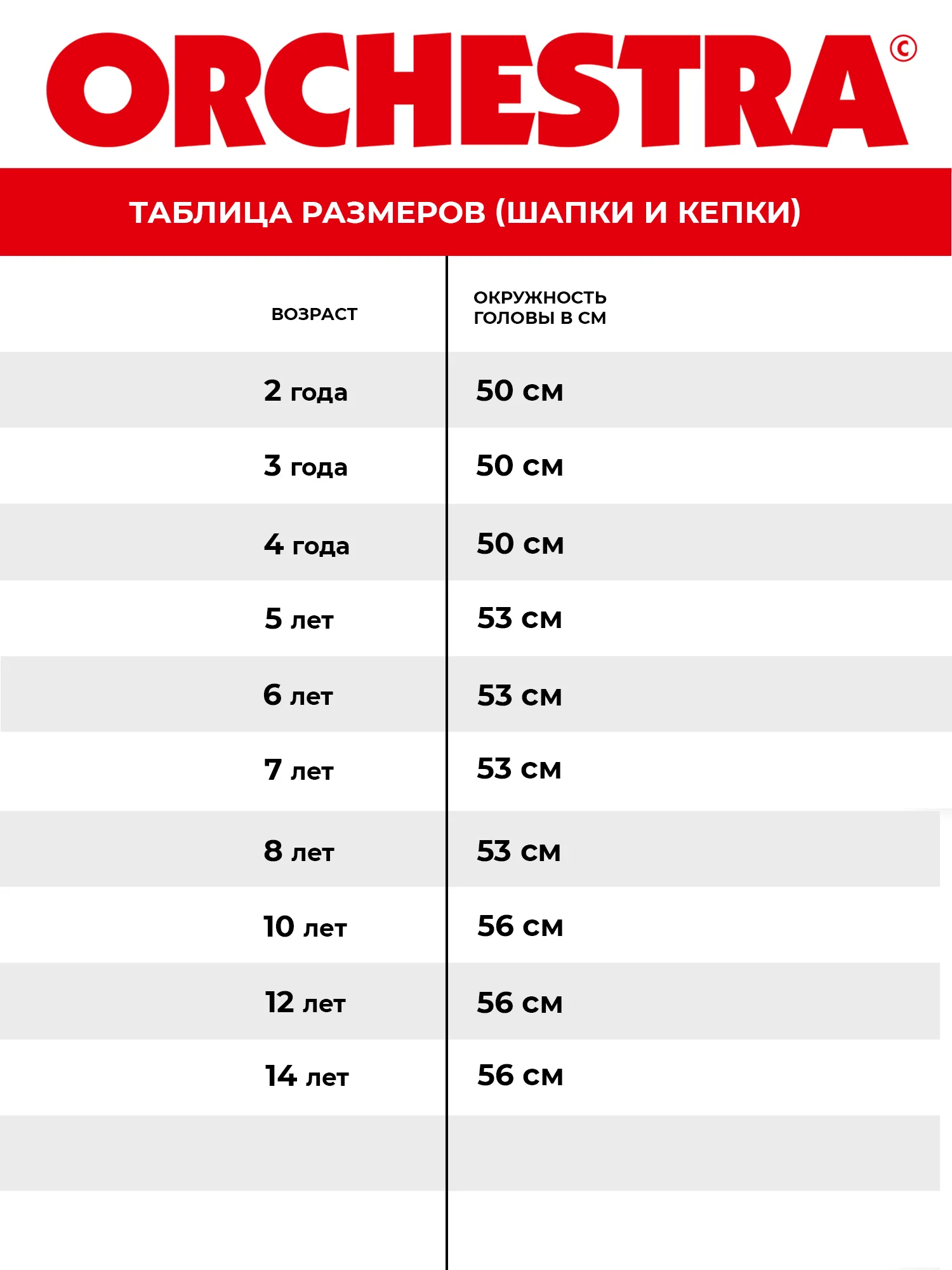 Таблица размеров