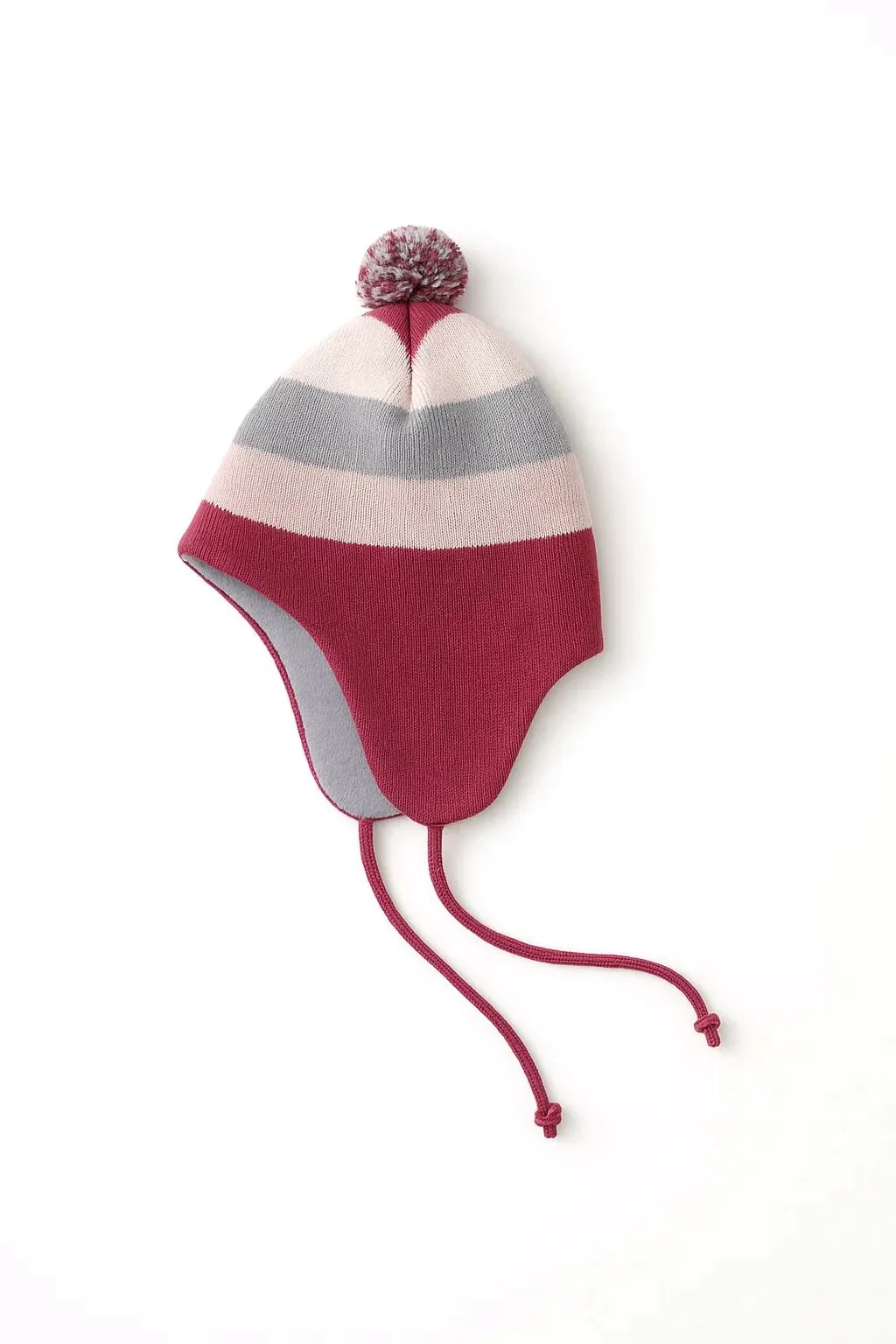Зимняя вязаная шапка для малыша. Модель выполнена из мягкой пряжи (50% шерсть, 50% акрил) с плотной утолщённой вязкой, хорошо удерживающей тепло. Внутренняя подкладка из флиса (100% полиэстер) обеспечивает дополнительный комфорт и защиту от холода. Удлинённые ушки прикрывают уши, а декоративные завязки придают стильный акцент. Шапка рассчитана на температурный режим от –10°C до +5°C, что делает её отличным выбором для холодного сезона.