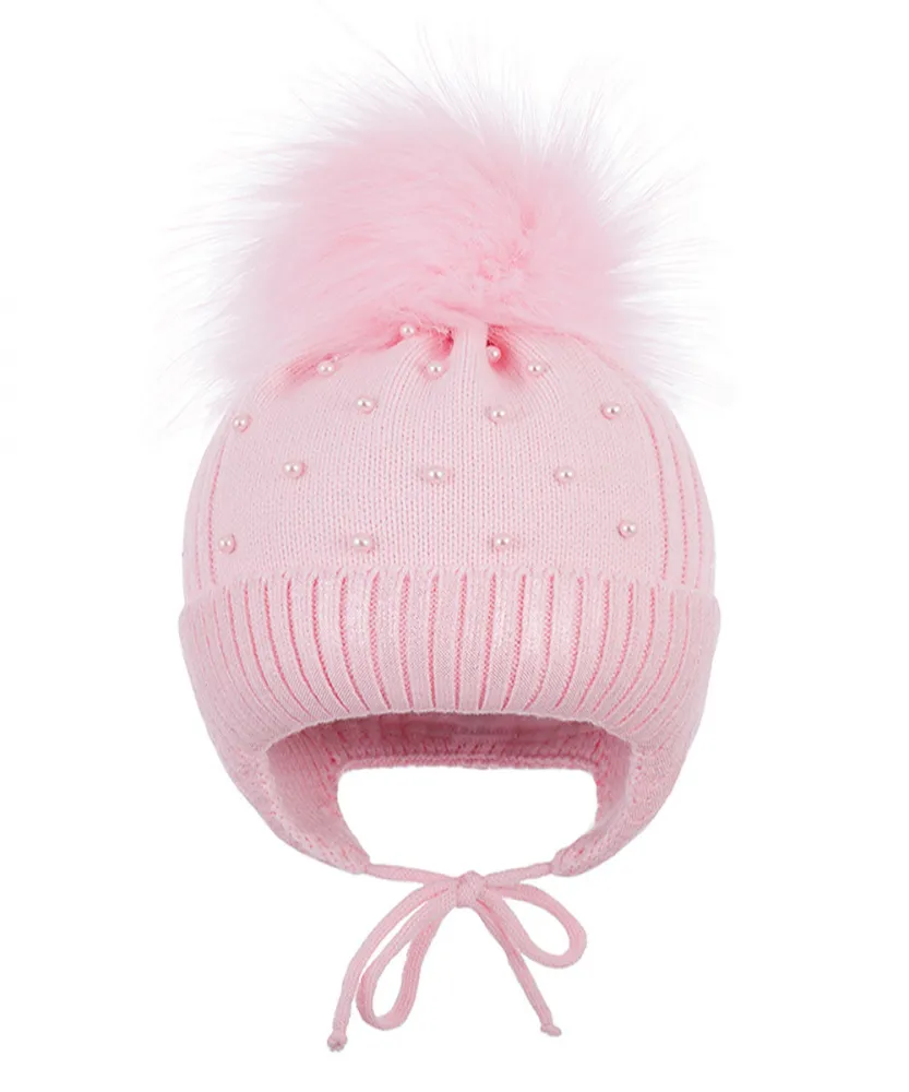 Шапка украшена аккуратными бусинами, придающими изделию стильный и нарядный вид.