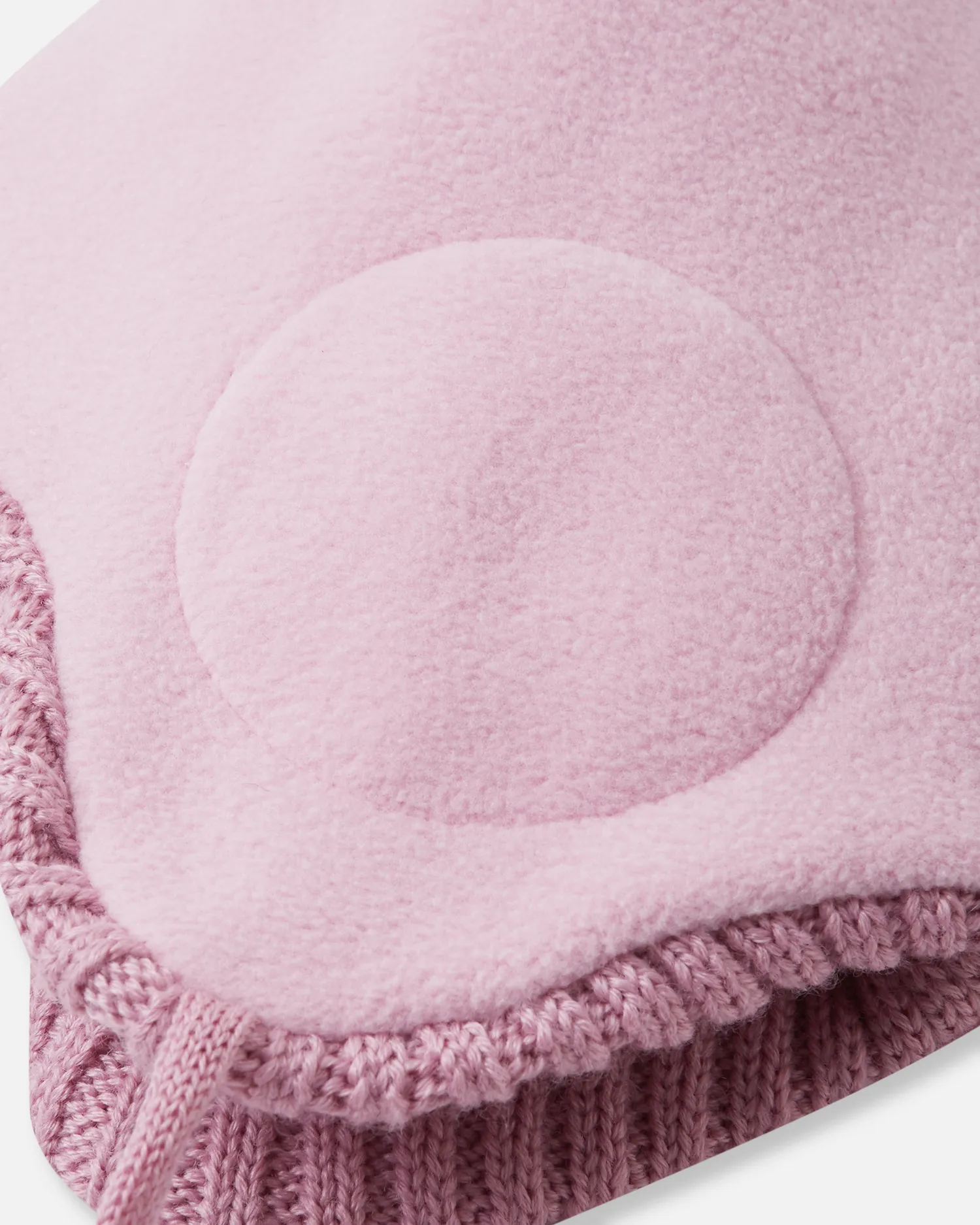 Зимняя детская вязаная шапка из тёплого полушерстяного трикотажа (50% шерсть, 50% полиэстер) создана для комфортных прогулок в холодное время года. Шерсть выступает превосходным терморегулятором, сохраняя тепло и предотвращая перегрев. Сплошная мягкая флисовая подкладка обеспечивает уют и дополнительное согревание, а ветронепроницаемые вставки надёжно защищают ушки от ветра. Практичная и стильная модель станет отличным выбором для зимы.