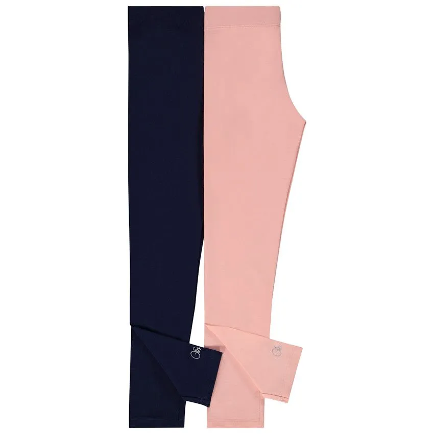 Набор из 2 трикотажных леггинсов с эластичной талией для комфорта. На левой щиколотке расположен принт что добавляет стильный акцент. Леггинсы выполнены из мягкого материала (95% хлопок, 5% эластан), который обеспечивает хорошую посадку и свободу движений.
