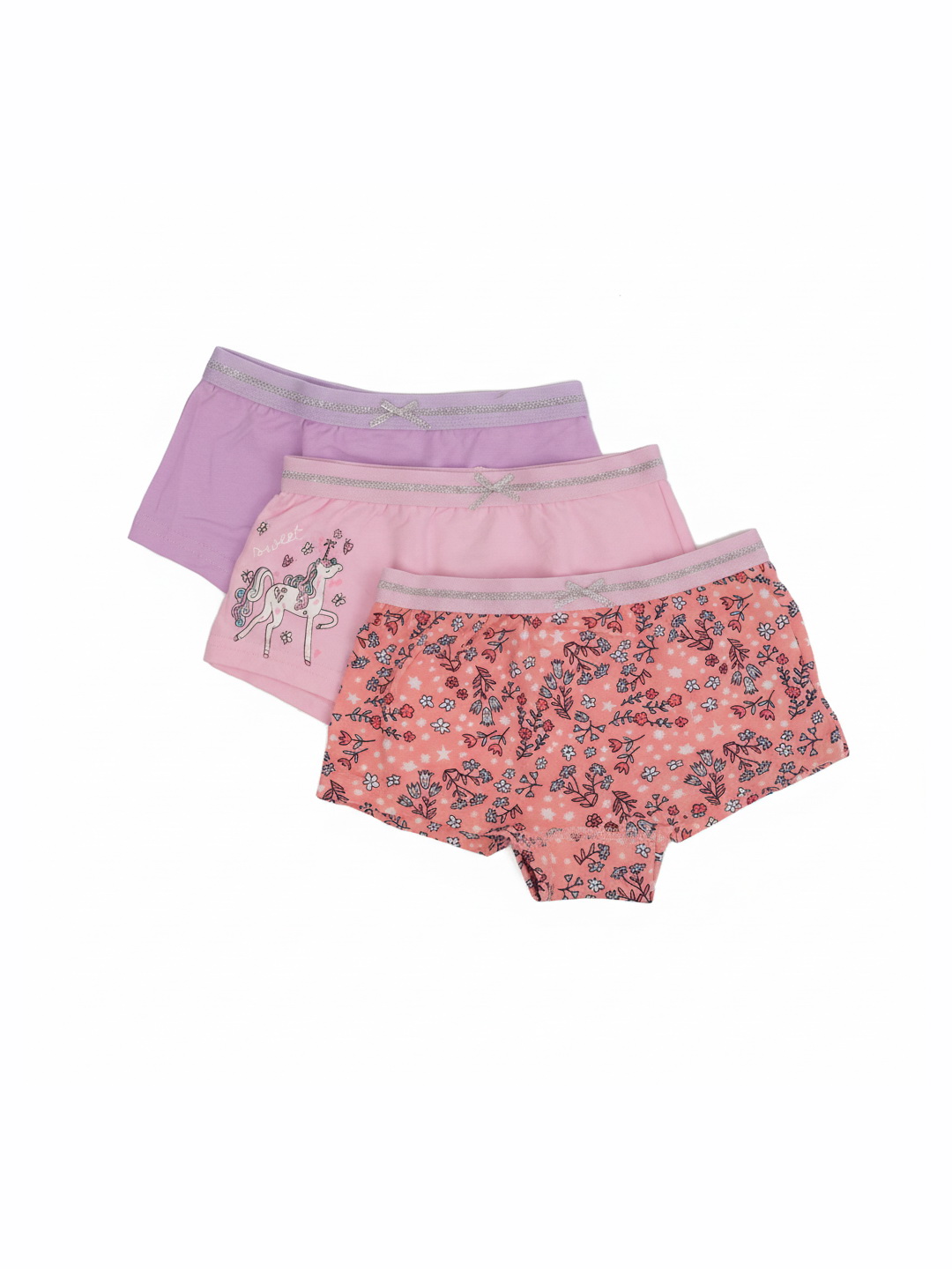 Набор из 3 трусов-хипстеров для девочки в ярких цветах. Изготовлены из мягкого хлопка с добавлением спандекса (95% хлопок, 5% спандекс), что обеспечивает комфорт и эластичность. Удобная посадка и мягкая резинка на поясе гарантируют свободу движений и комфорт на каждый день.