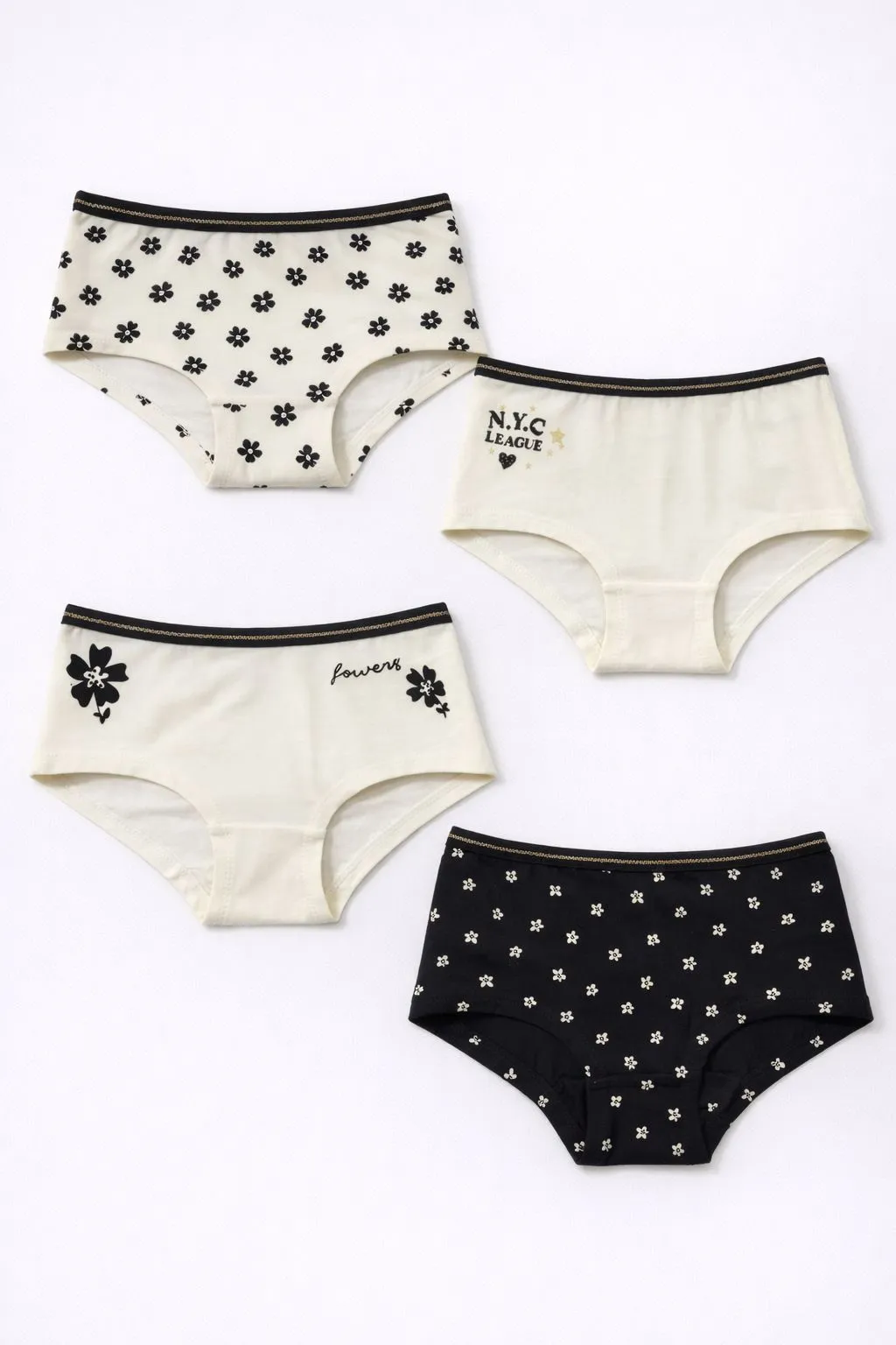 Практичный и аккуратный набор из четырёх трусов создан для ежедневного комфорта девочки. Модели подойдут для повседневного использования, сочетая удобную посадку и аккуратный дизайн.