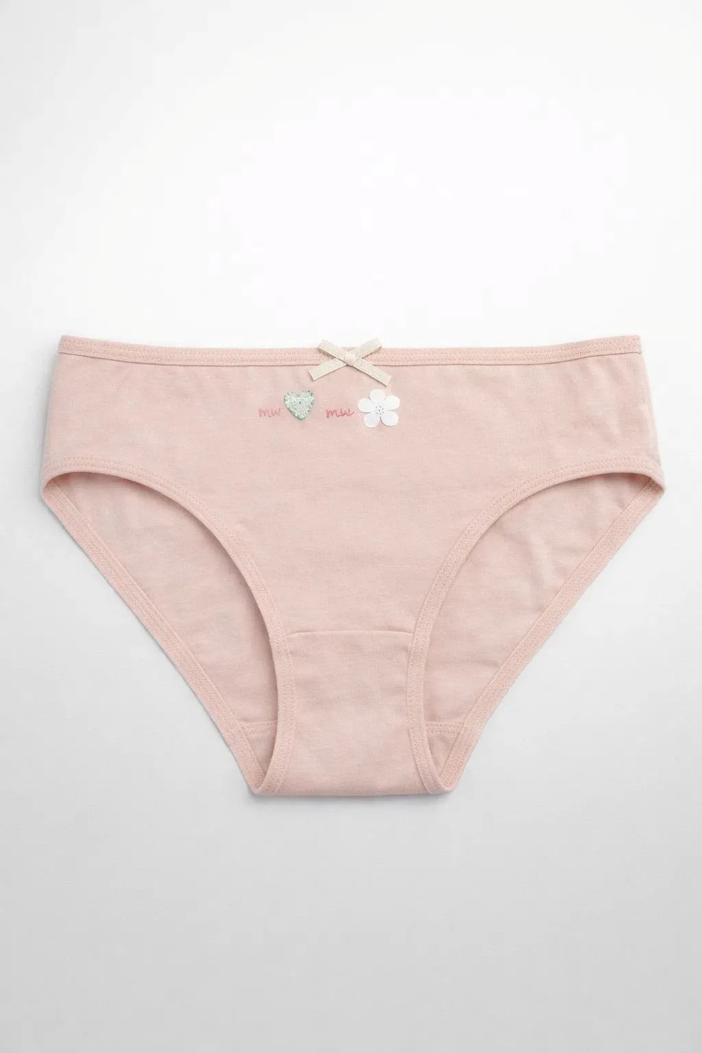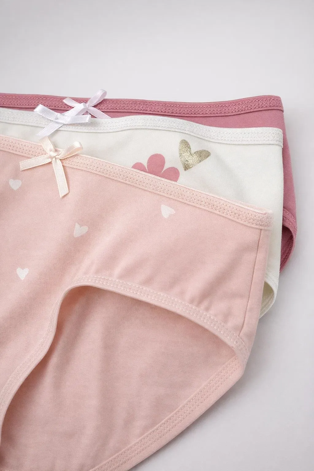 Удобный и практичный набор из 7 трусиков, выполненных из мягкого трикотажа (95% хлопок, 5% эластан). Модели имеют эластичную талию и края по бедрам для комфортной посадки. Спереди — небольшой декоративный бантик из ленты.