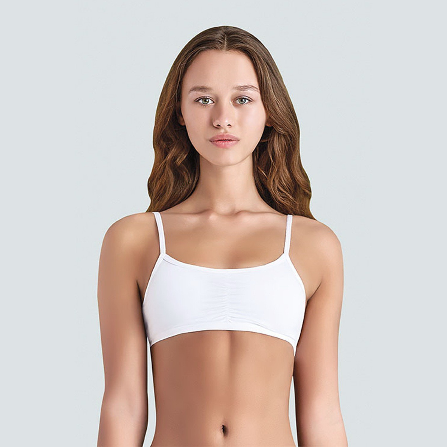 Топ со съемными вкладышами для девочки на тонких бретелях. Выполнен из натуральной хлопчатобумажной ткани с добавлением эластана, что улучшает посадку изделия. Натуральная трикотажная ткань «дышит», сохраняет тепло- и влагообмен, мягкий материал не натирает нежную кожу.