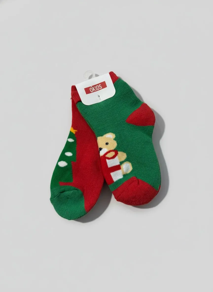Мягкие тёплые носки с праздничным дизайном — идеальный вариант для зимы и подарков. Яркие цвета, милый медвежонок и ёлочка создают новогоднее настроение, а мягкий трикотаж обеспечивает комфорт и уют маленьким ножкам. Подходят для повседневной носки и как дополнение к праздничному образу.