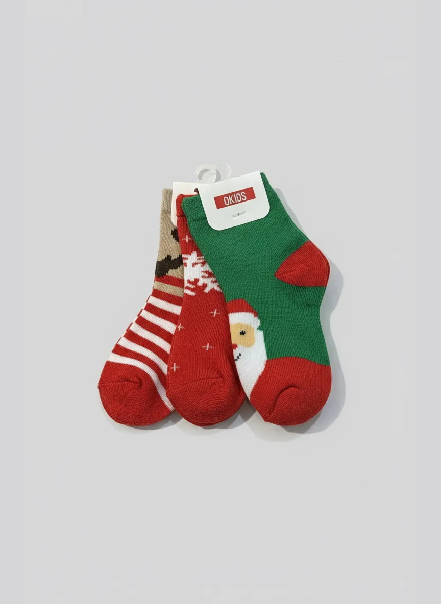 Детские носочки OKIDS — яркий новогодний набор из трёх пар, который создаст праздничное настроение каждый день. В комплект входят носочки с Санта-Клаусом, со снежинками и в красно-белую полоску с оленёнком — каждую пару можно сочетать с зимними образами и надевать под тёплую одежду или дома. Мягкий трикотаж приятно прилегает к коже, хорошо тянется и обеспечивает комфорт в течение дня, а насыщенные цвета сохраняют яркость даже после стирки. Отличный выбор для зимы, подарка и новогоднего сезона!