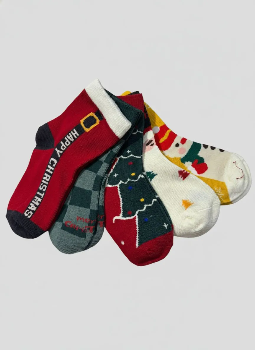 Набор детских носочков из 5 пар — яркая новогодняя подборка, наполненная сказочным настроением. В комплект входят носочки с Санта-Клаусом, ёлочками, надписями Merry Christmas и зимними мотивами. Мягкий трикотаж приятен к коже, хорошо тянется и обеспечивает комфорт в течение дня. Благодаря плотной вязке носки сохраняют тепло, а насыщенные цвета и рисунки смотрятся стильно и празднично. Такой набор идеально подходит для зимы, утренников, домашних уютных дней и как красивый подарок ребёнку к праздникам.