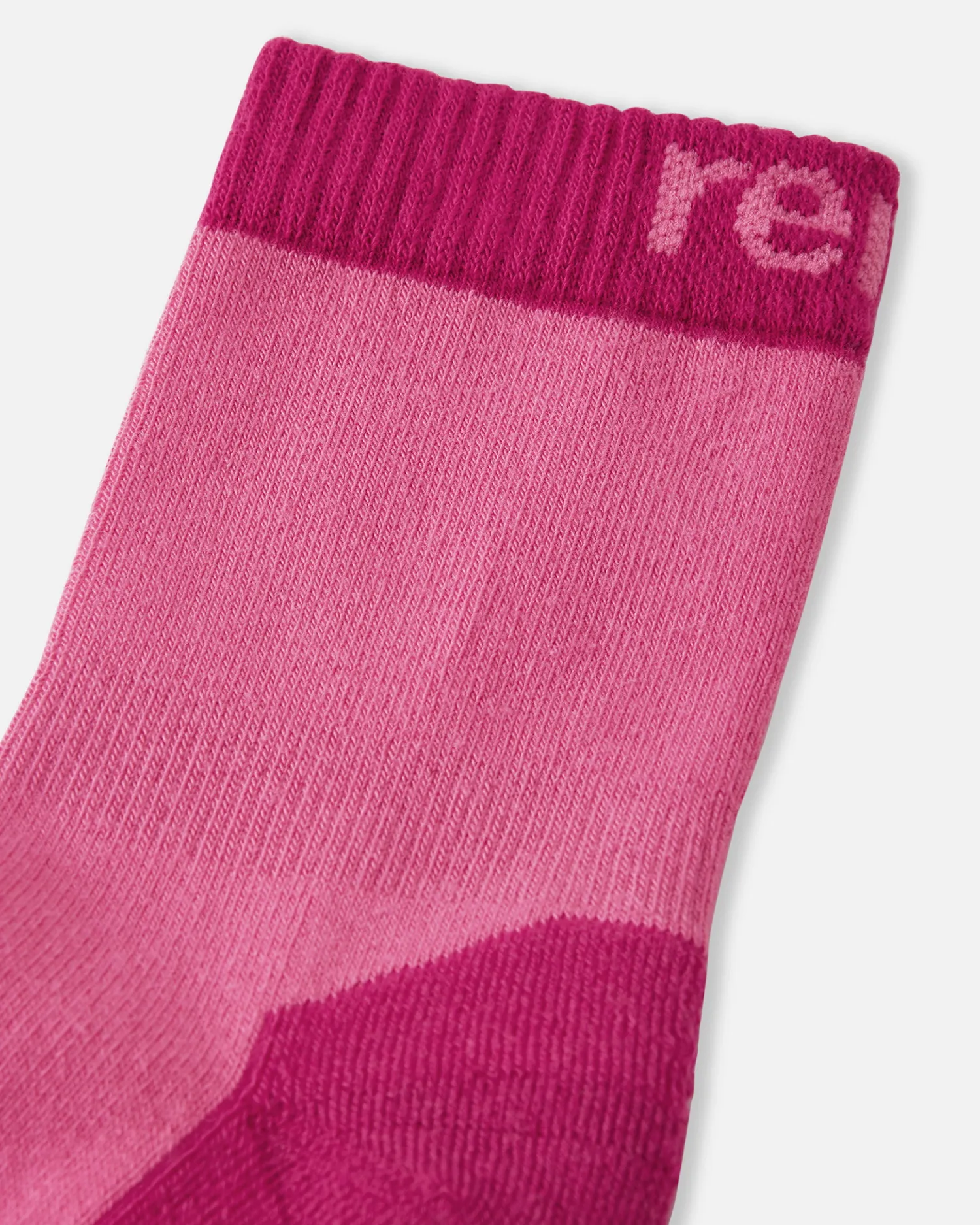 Комфортные носочки для Ваших маленьких принцесс. Плотный трикотаж. Эластичная резиночка с логотипом Reima. Контрастные манжеты и стопы. Яркая практичная расцветка. Высокая посадка.