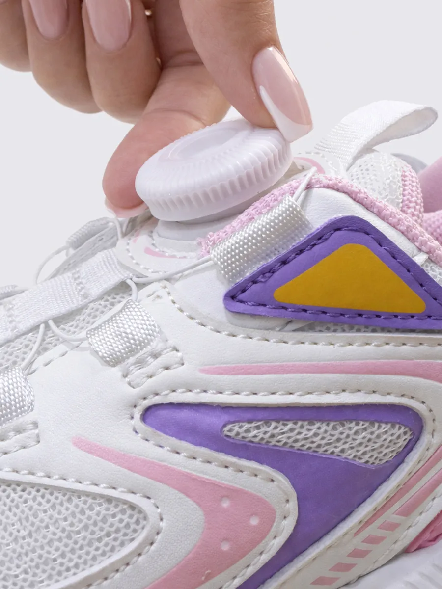 Мягкая текстильная подкладка обеспечивает комфорт в течение всего дня, а лёгкая подошва из филона с элементами ТПР отлично амортизирует шаги, оставаясь устойчивой и нескользящей. Удобная система быстрой фиксации позволяет легко надевать и снимать кроссовки, обеспечивая надёжную посадку на ноге ребёнка.