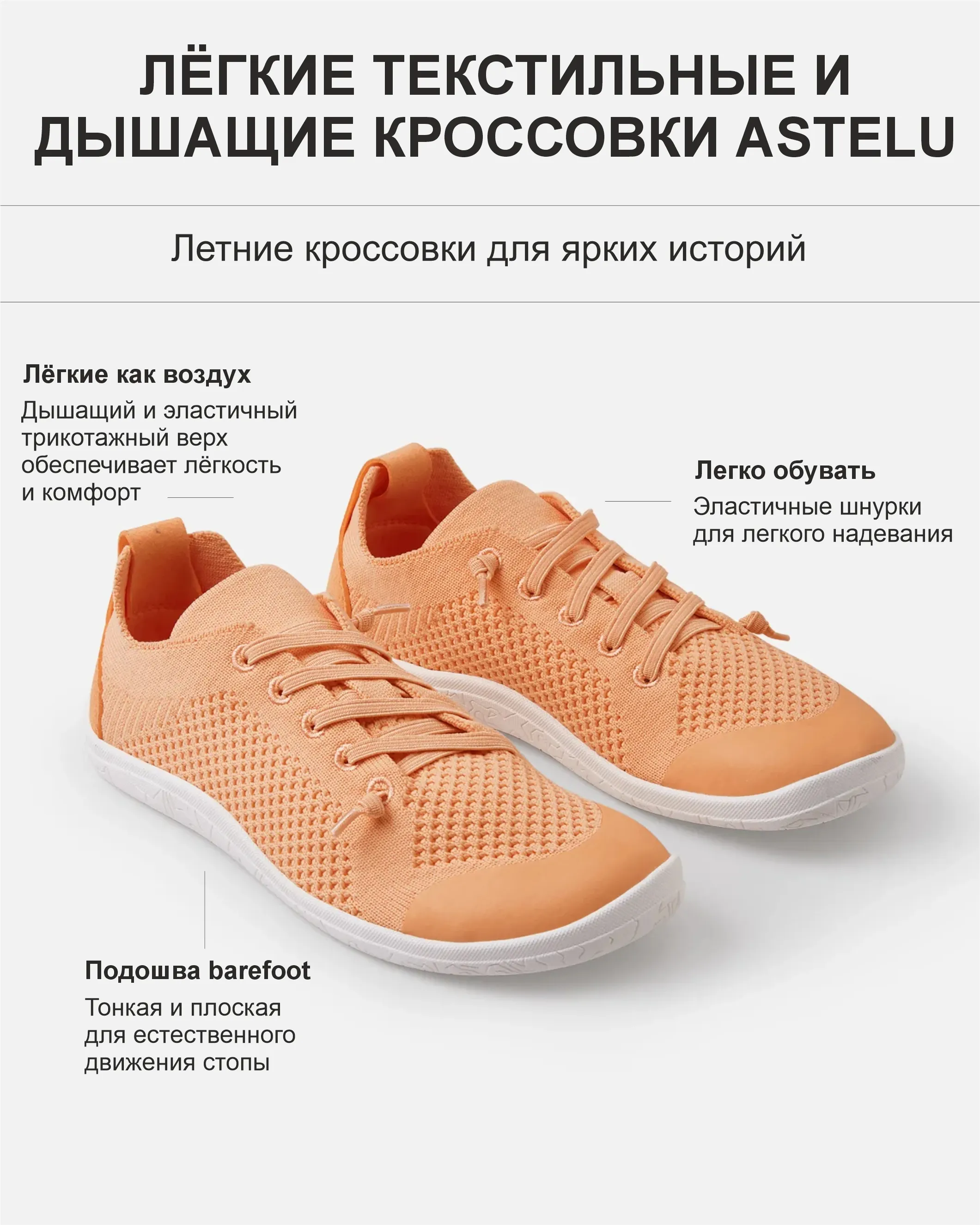 Детские кроссовки Astelu легкие и удобные, а также поддерживают правильное развитие стопы благодаря широкой колодке Reima Barefoot с дополнительным местом для пальцев. Верх выполнен из дышащего эластичного трикотажа, который идеально подходит для теплой погоды. Под пяткой нет возвышения подошвы, что обеспечивает более естественную стойку и походку. Гибкая, тонкая (4 мм) резиновая подошва позволяет уверенно ходить по различным поверхностям. Кроссовки Barefoot — отличная обувь для детей раннего возраста и для прогулок по естественной местности. Эту обувь можно стирать в машине в деликатном режиме, что облегчит вашу повседневную жизнь. Вы ищете обувь для игр и бега по асфальту и бетону? Для более крупных детей и для твердых поверхностей мы рекомендуем кроссовки с большей амортизацией.