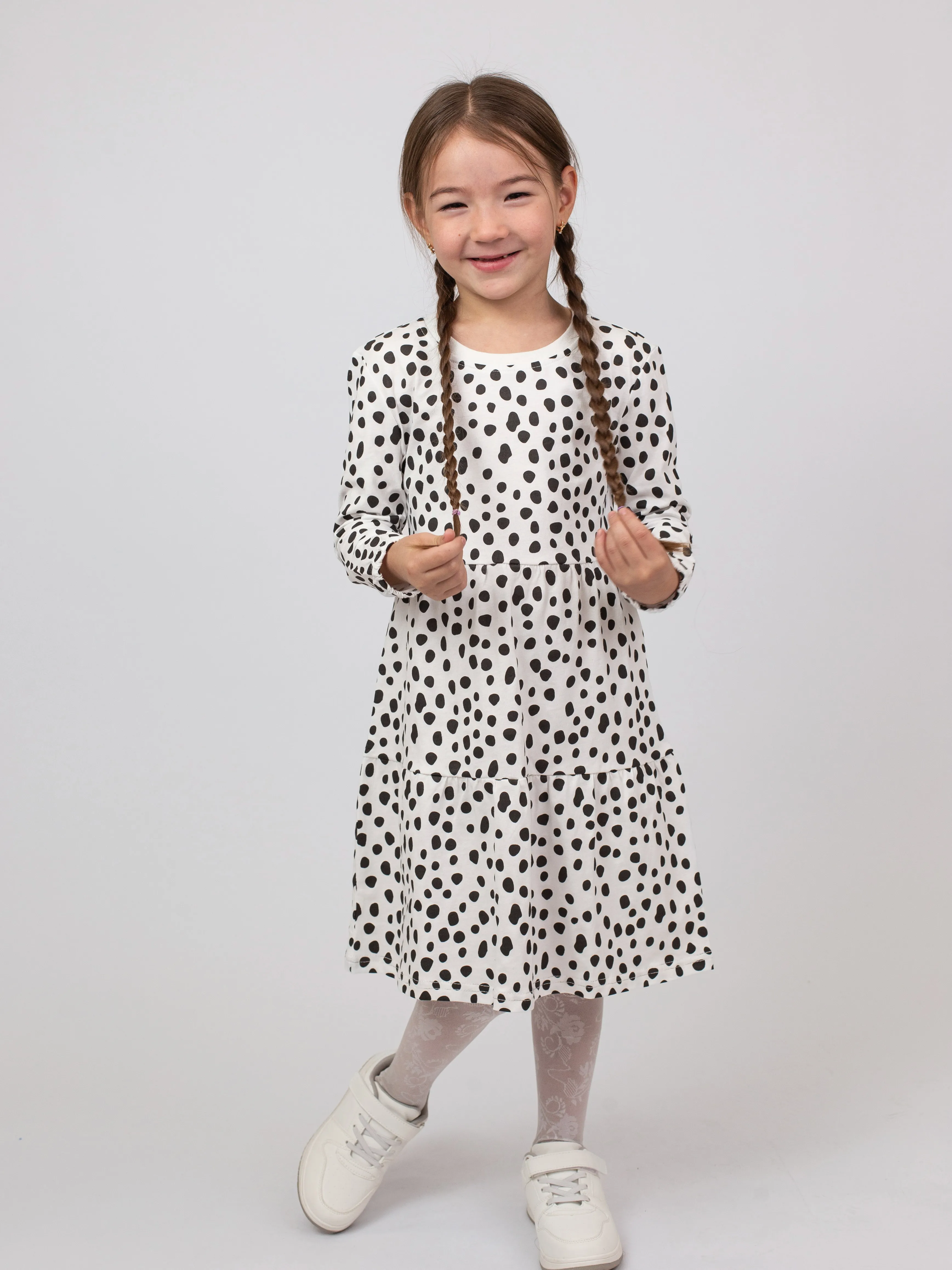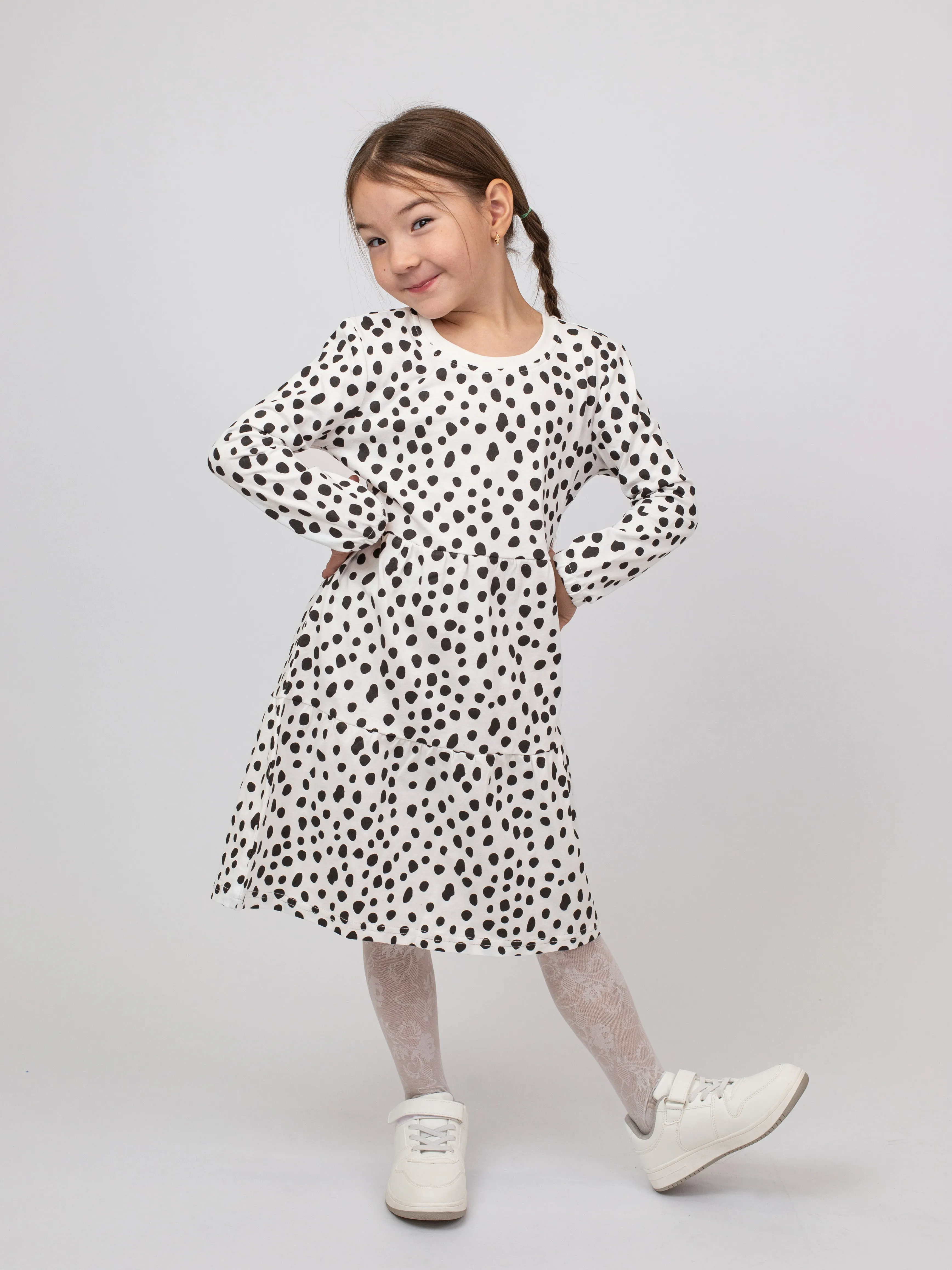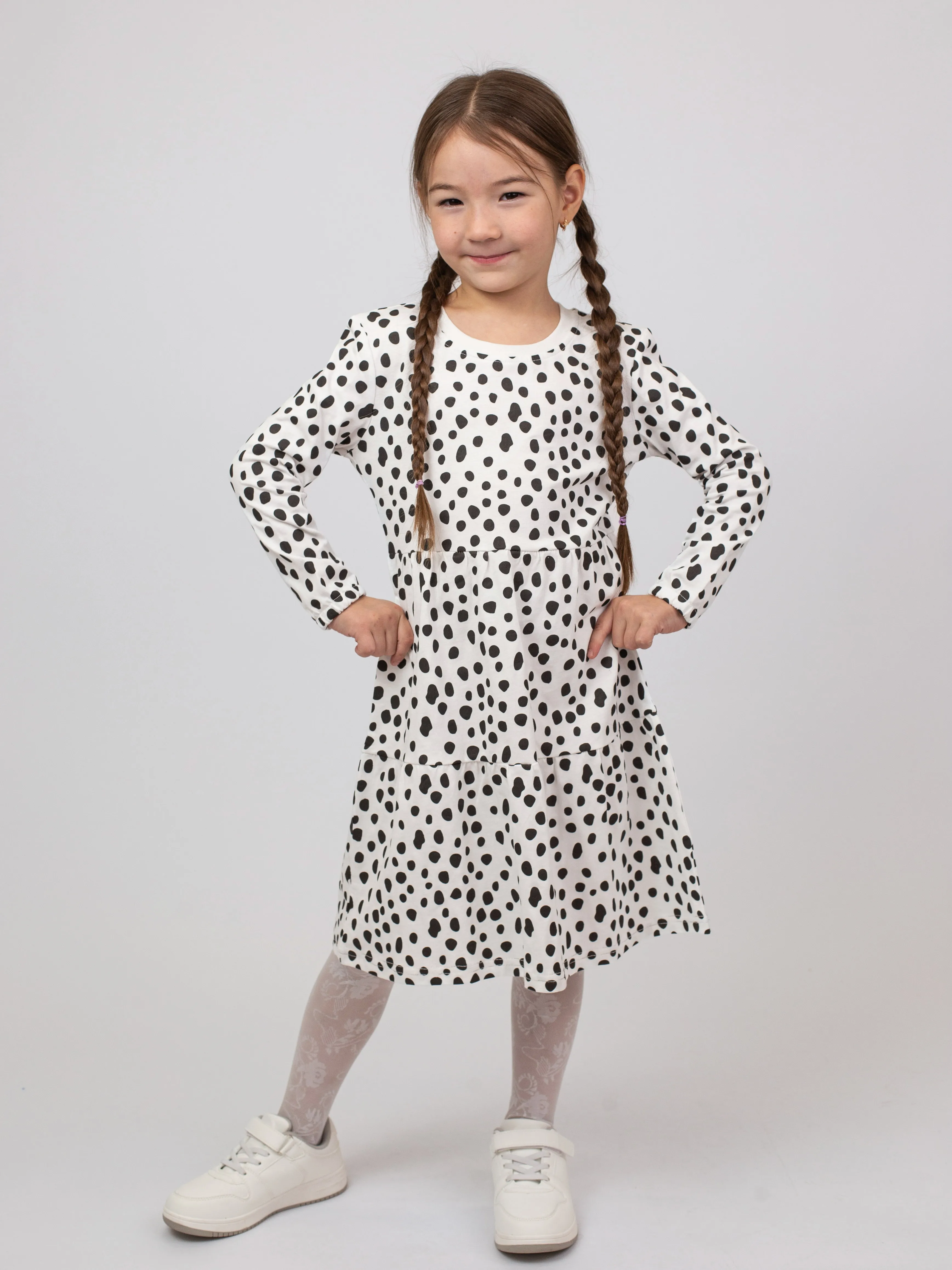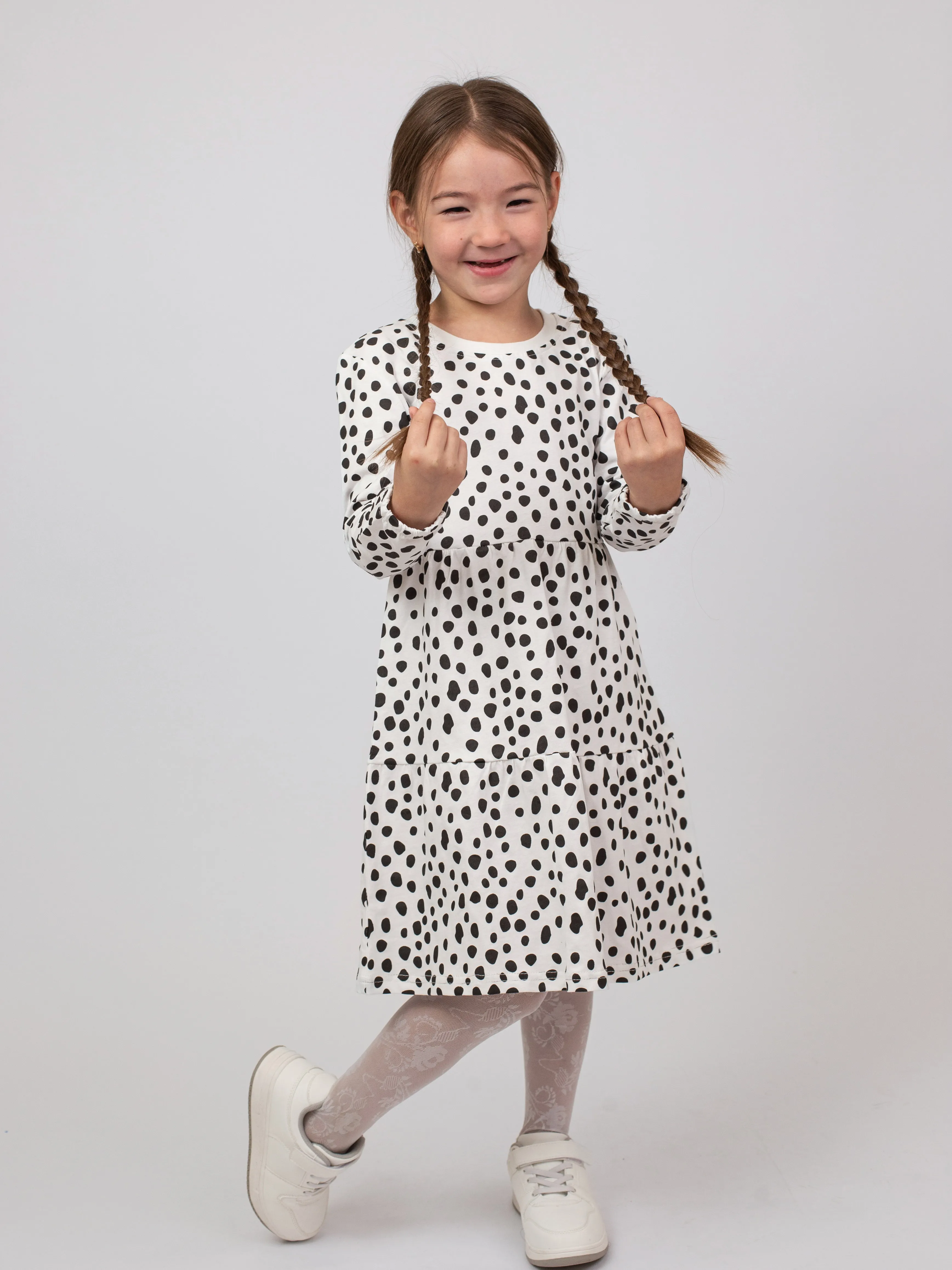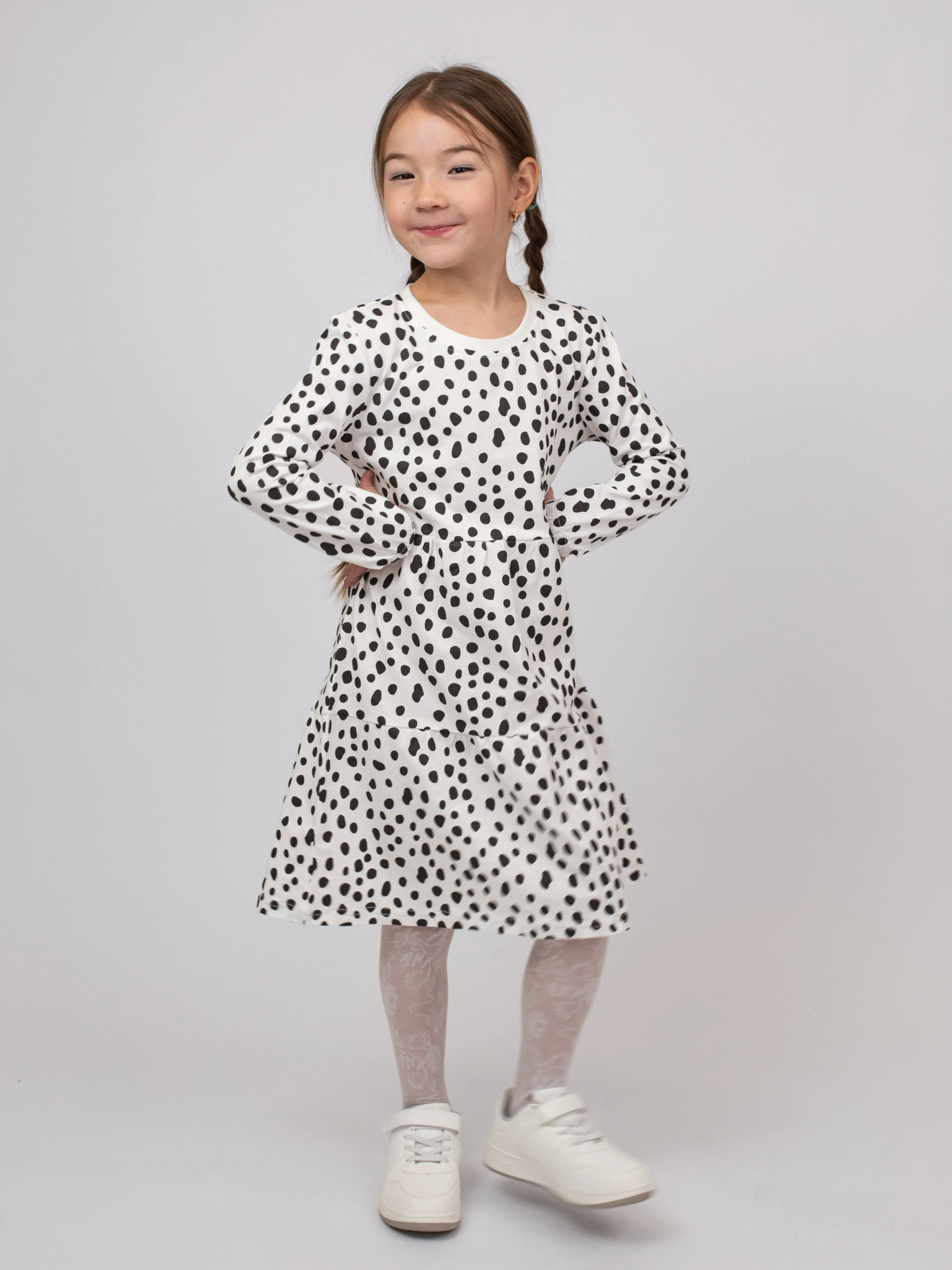 Универсальный фасон не стесняет движений и отлично сочетается с леггинсами, колготками или носочками. Идеально подходит для прогулок, праздников и повседневных приключений